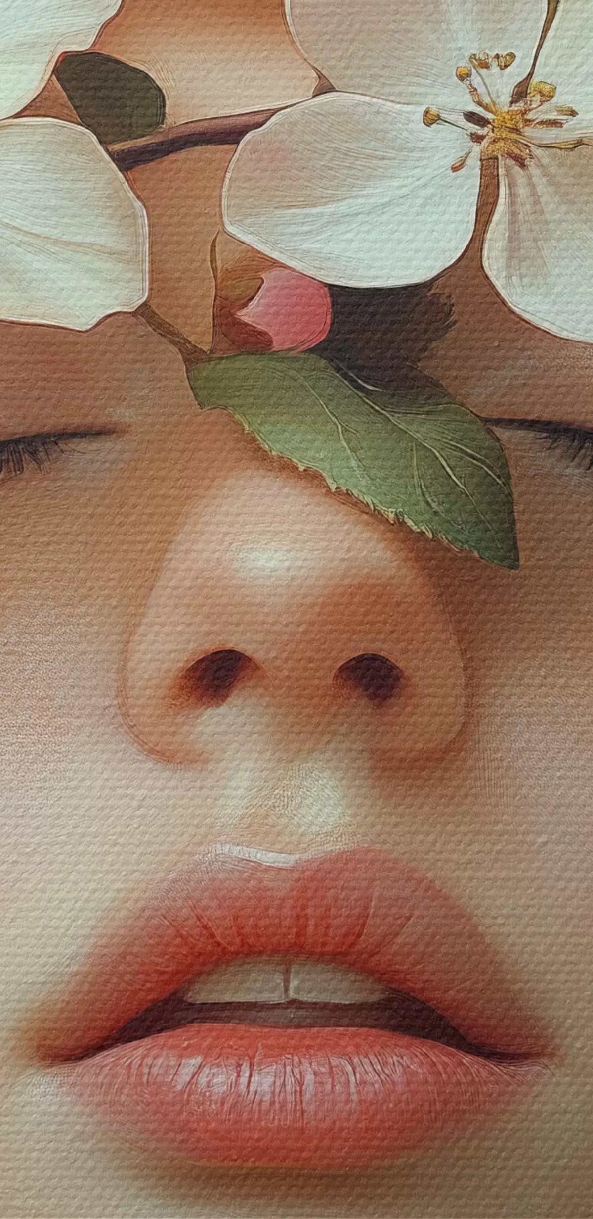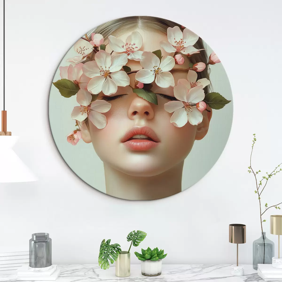 Tableaux rondes Portrait d'une jeune fille avec des fleurs sur le visage Nr r42506