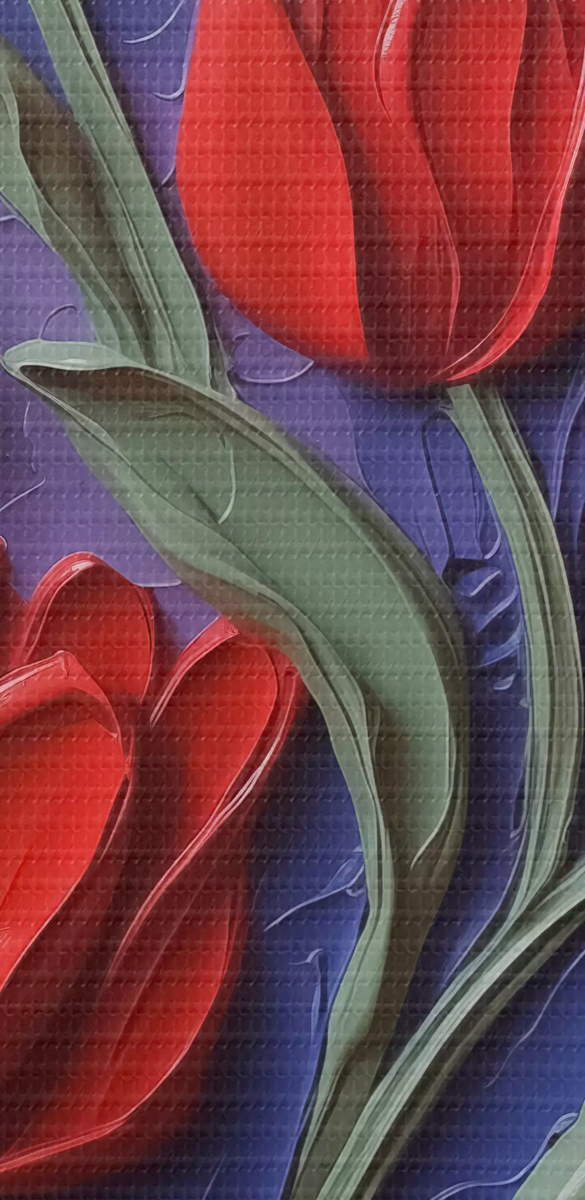 Tableaux rondes Tulipes rouges sur des coups de pinceau imitation violet Nr r42584