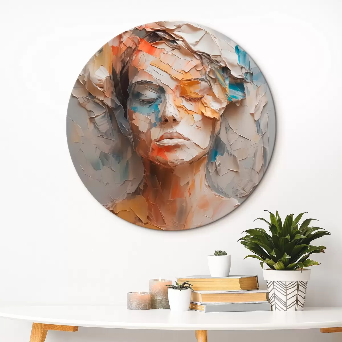 Tableaux rondes Portrait abstrait d'une fille imitation de coups de pinceau Nr r42587