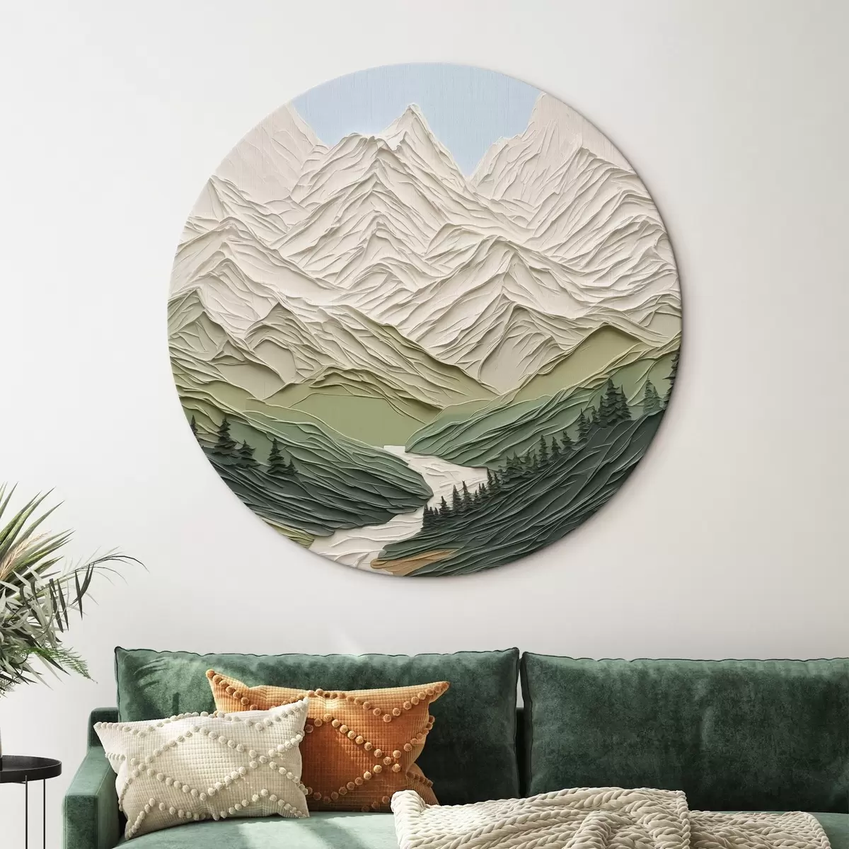 Tableaux rondes Paysage de montagne imitation coups de pinceau r42590