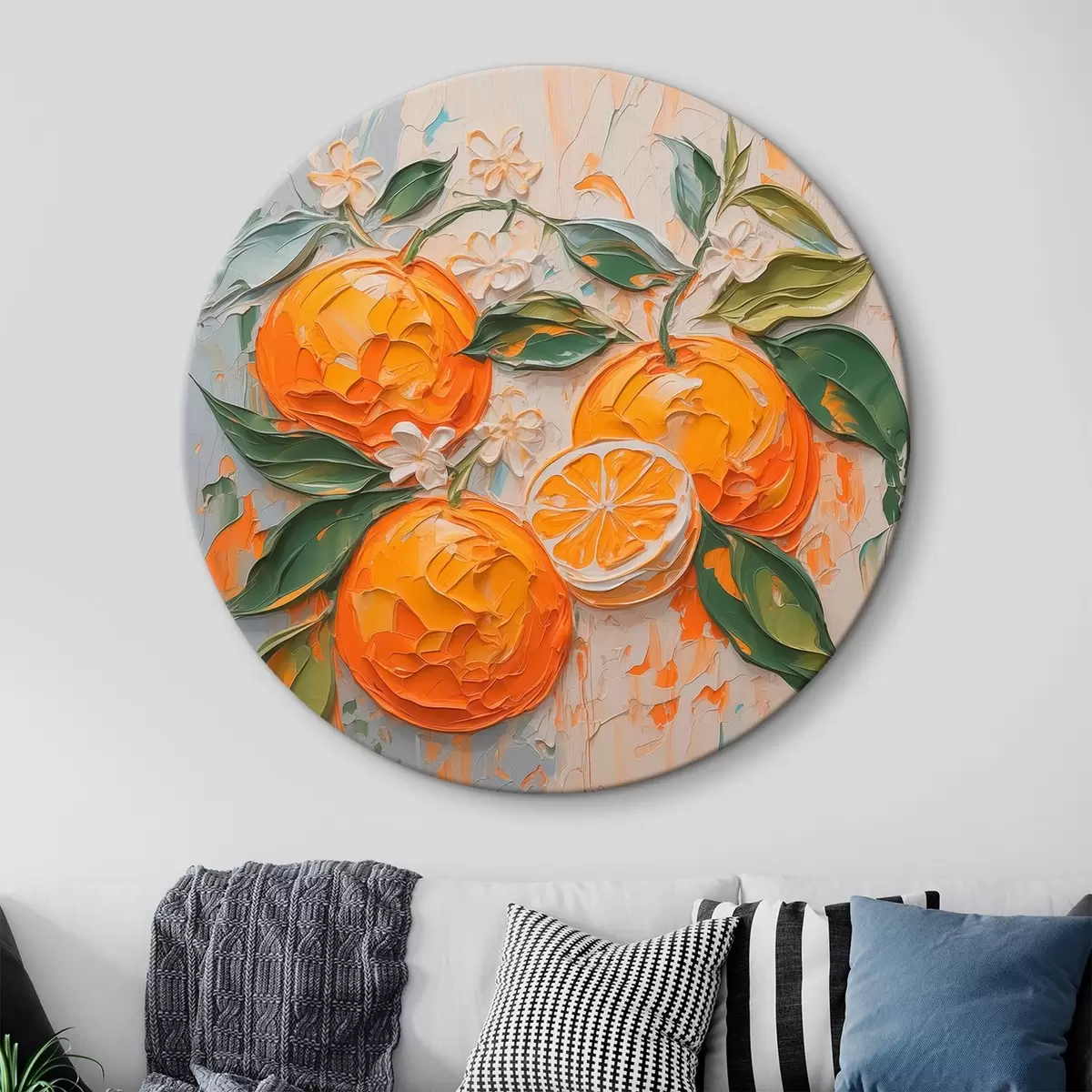 Tableaux rondes Oranges abstraites imitation coups de pinceau r42591