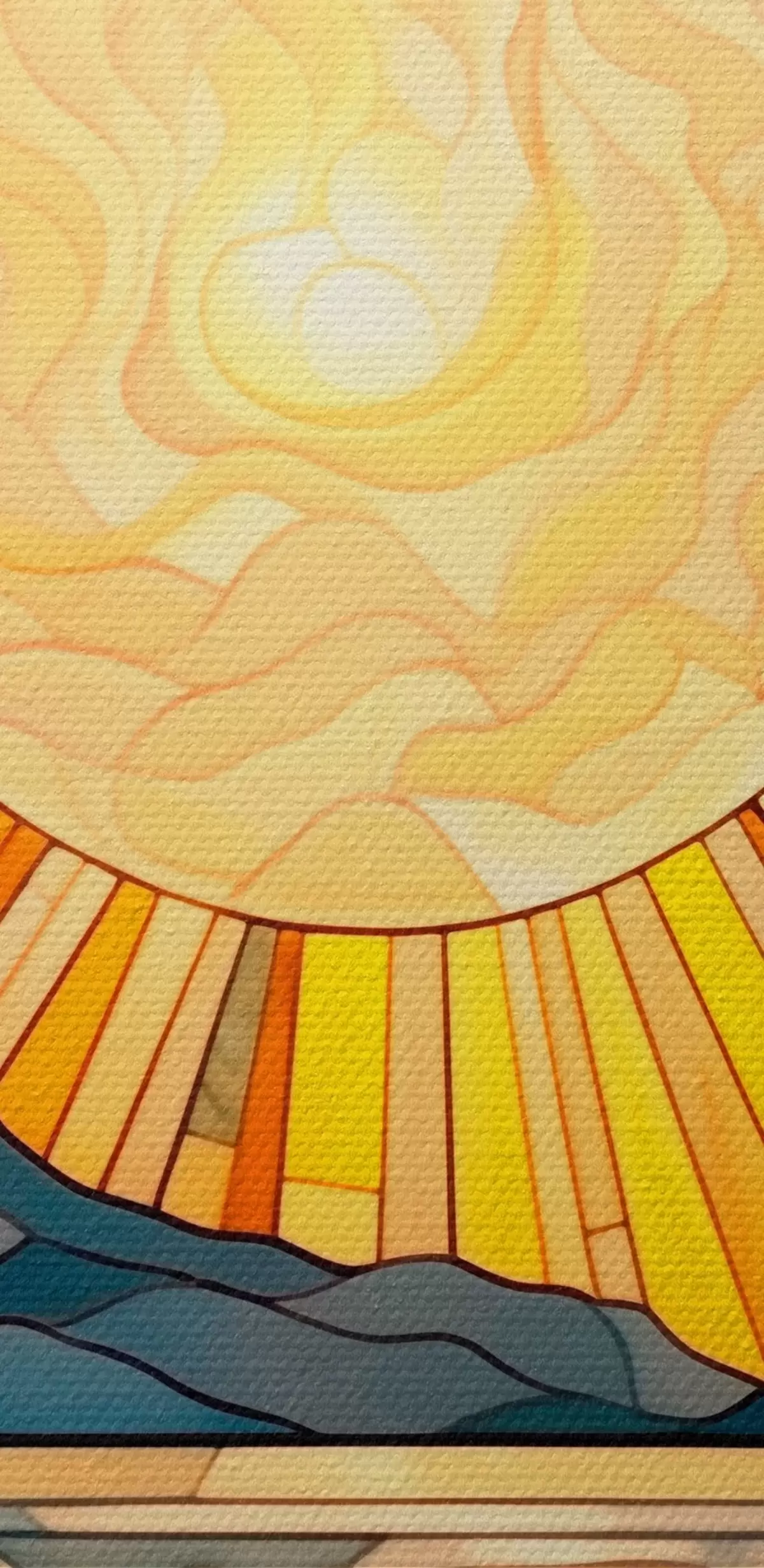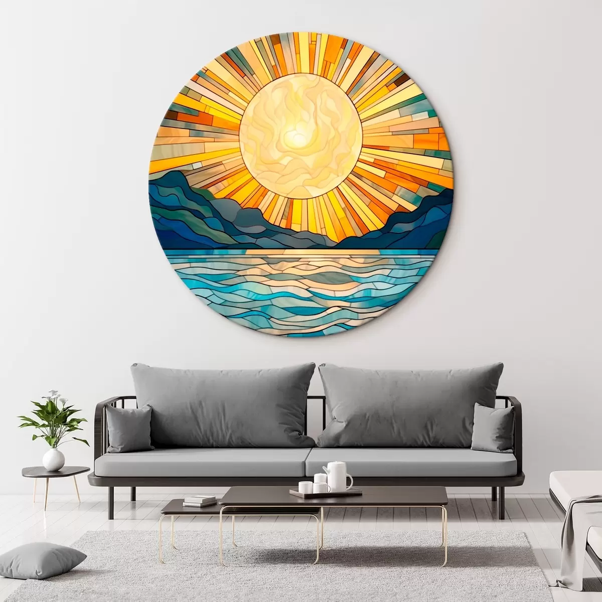 Tableaux rondes Soleil et vagues dans le style de l'art du vitrail r42654