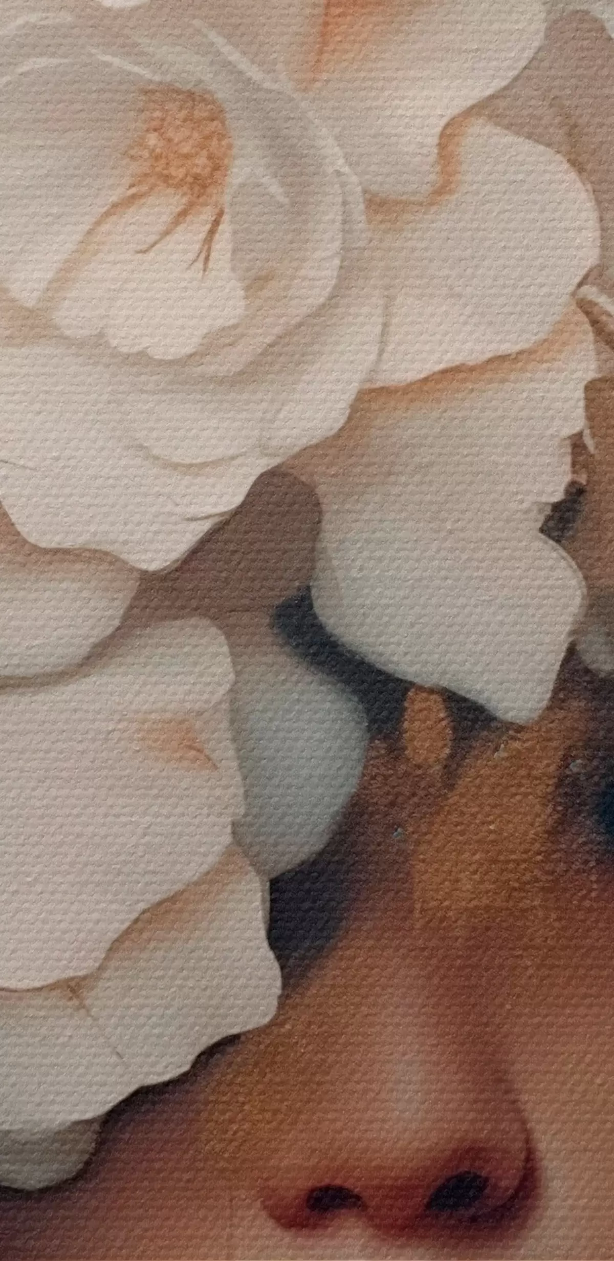 Tableaux rondes Portrait avec des fleurs blanches Nr r42664