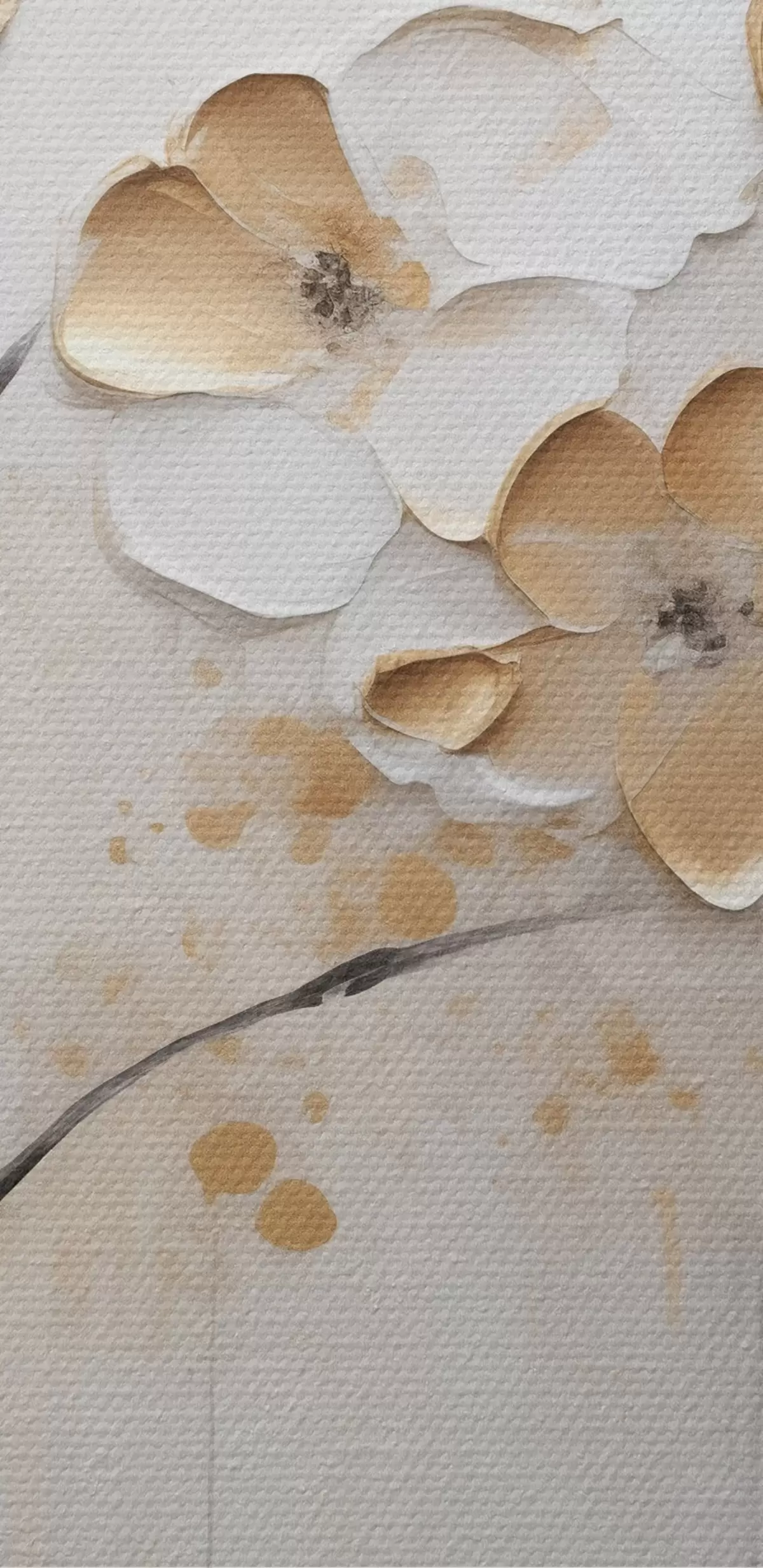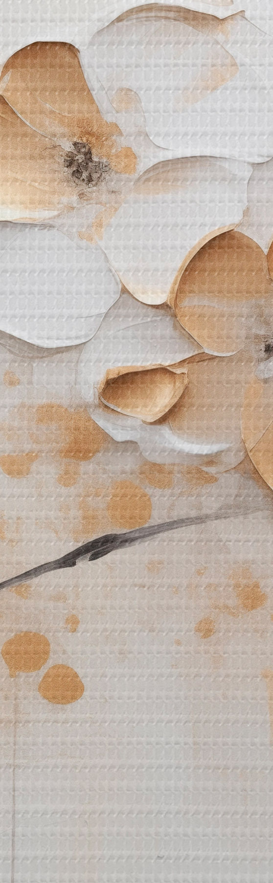Tableaux rondes Fleurs aux pétales texturés sur un arrière-plan doux et discret avec des éclaboussures de couleurs abstraites et des lignes verticales r42713