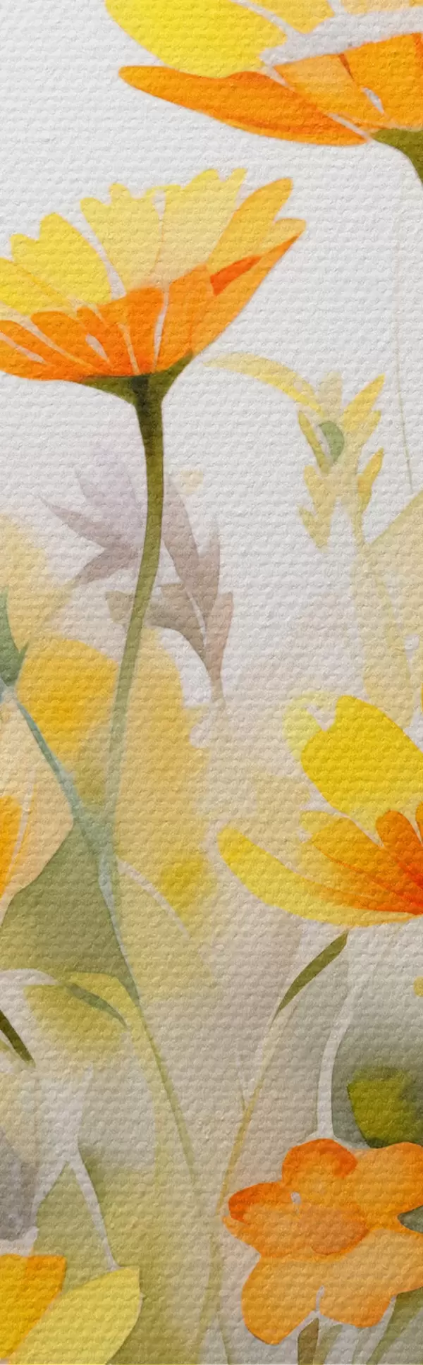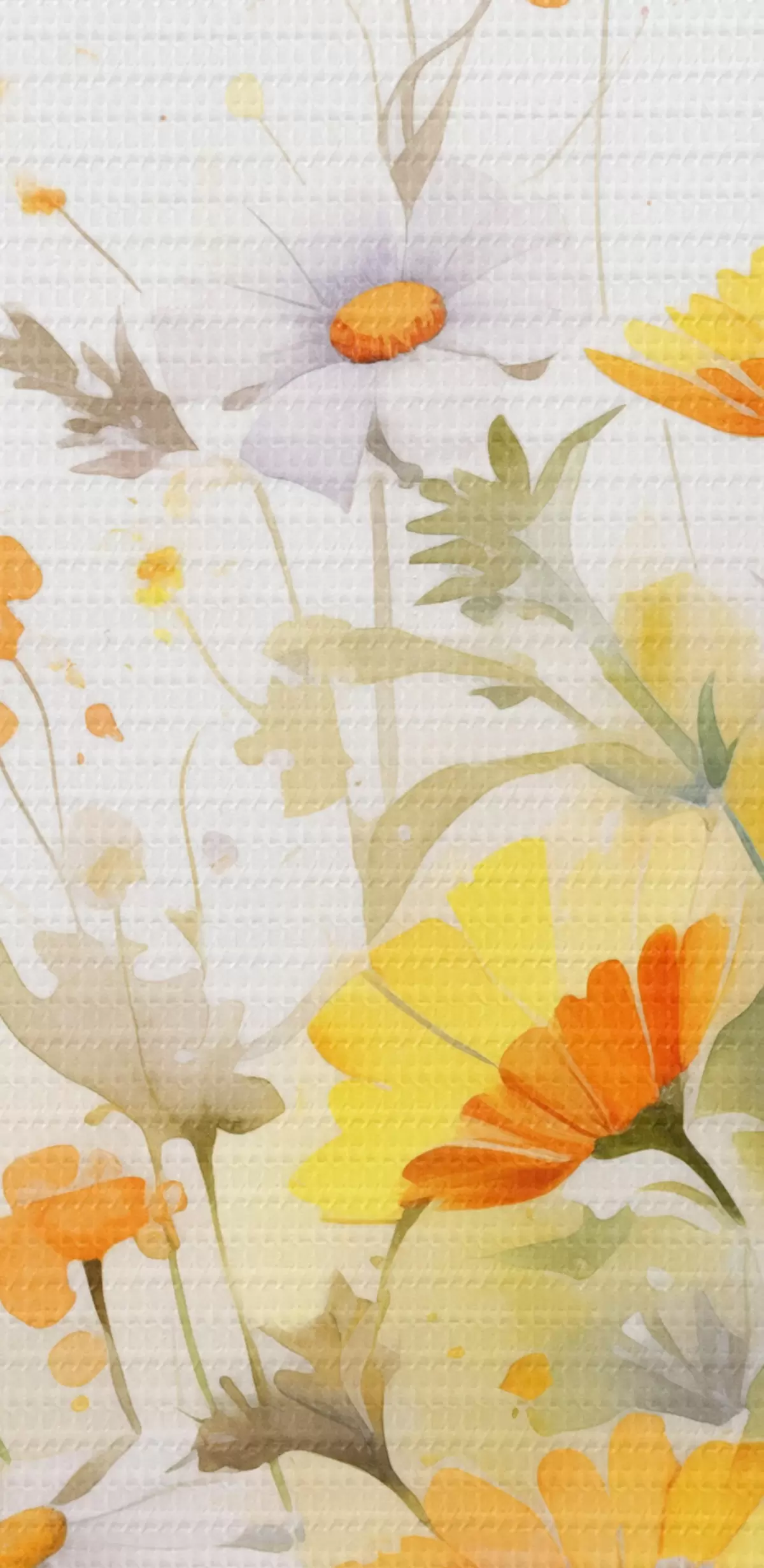 Tableaux rondes Un champ de fleurs vibrant, semblable à une aquarelle, avec des marguerites orange et blanches, et un papillon qui volette à proximité Nr r42714
