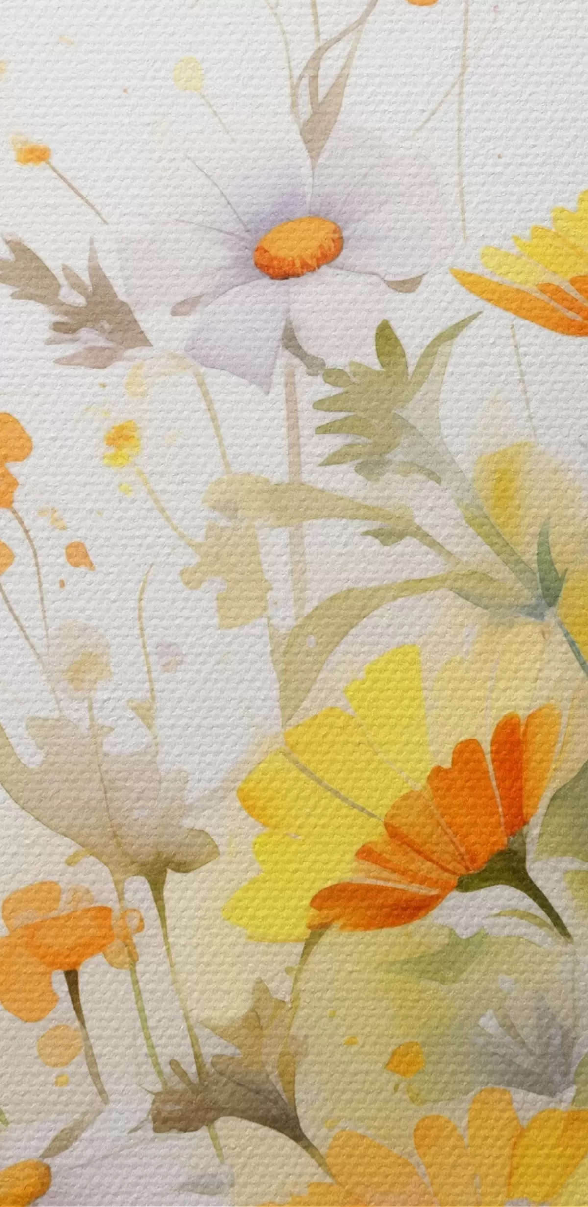 Tableaux rondes Un champ de fleurs vibrant, semblable à une aquarelle, avec des marguerites orange et blanches, et un papillon qui volette à proximité r42714