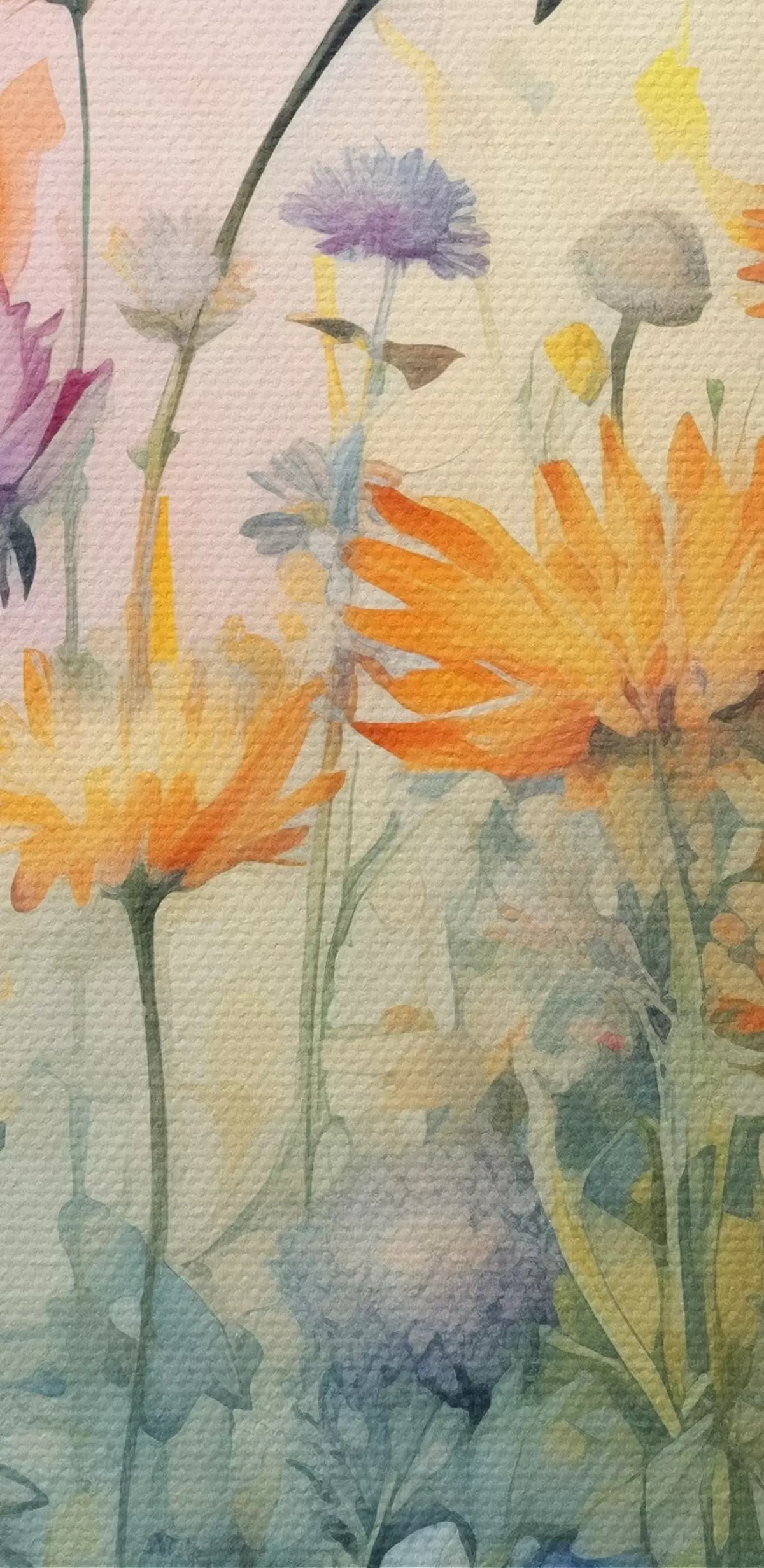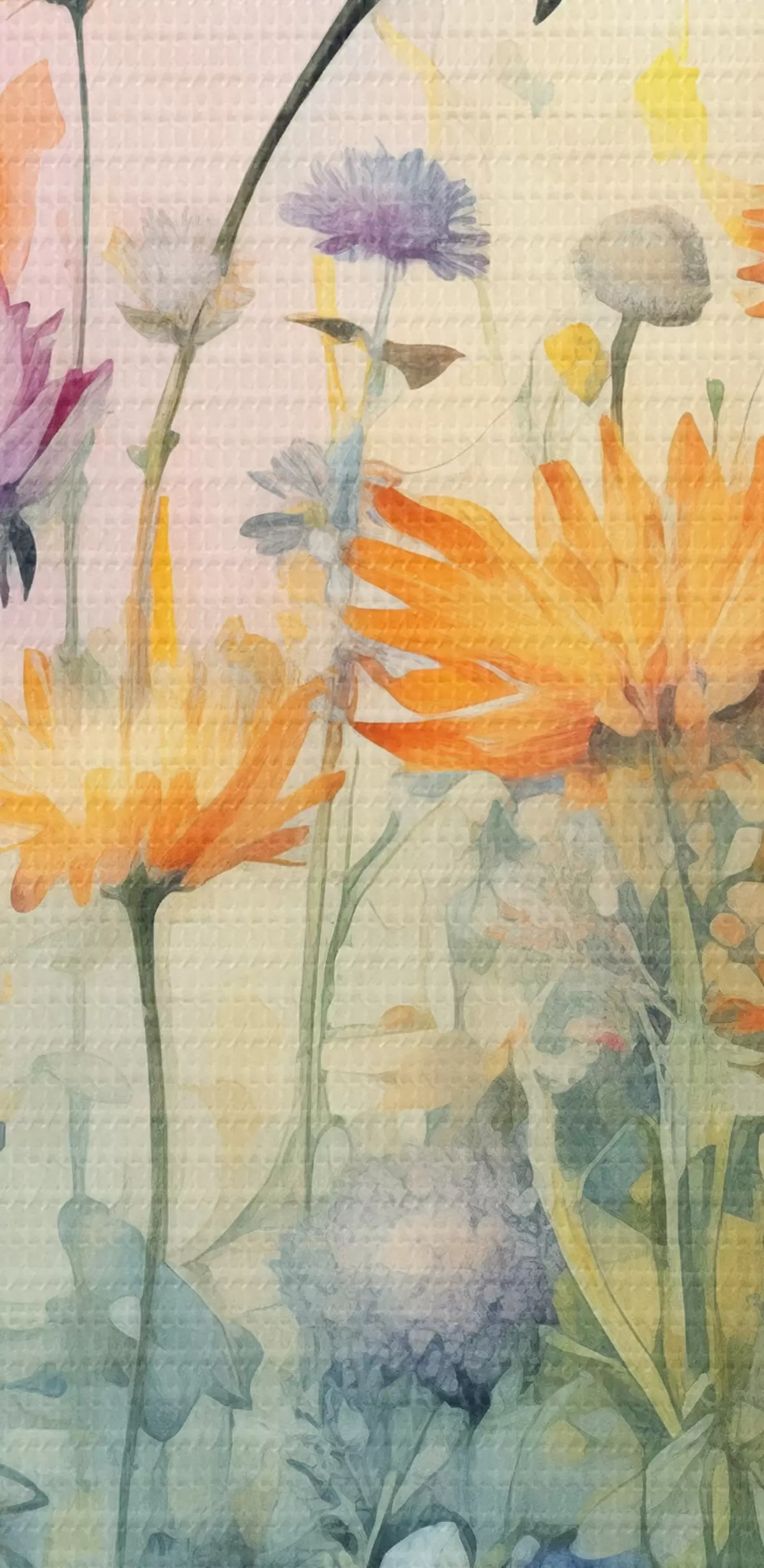 Tableaux rondes Un champ vibrant de fleurs sauvages hautes et luxuriantes sur un fond pastel doux semblable à une aquarelle r42726