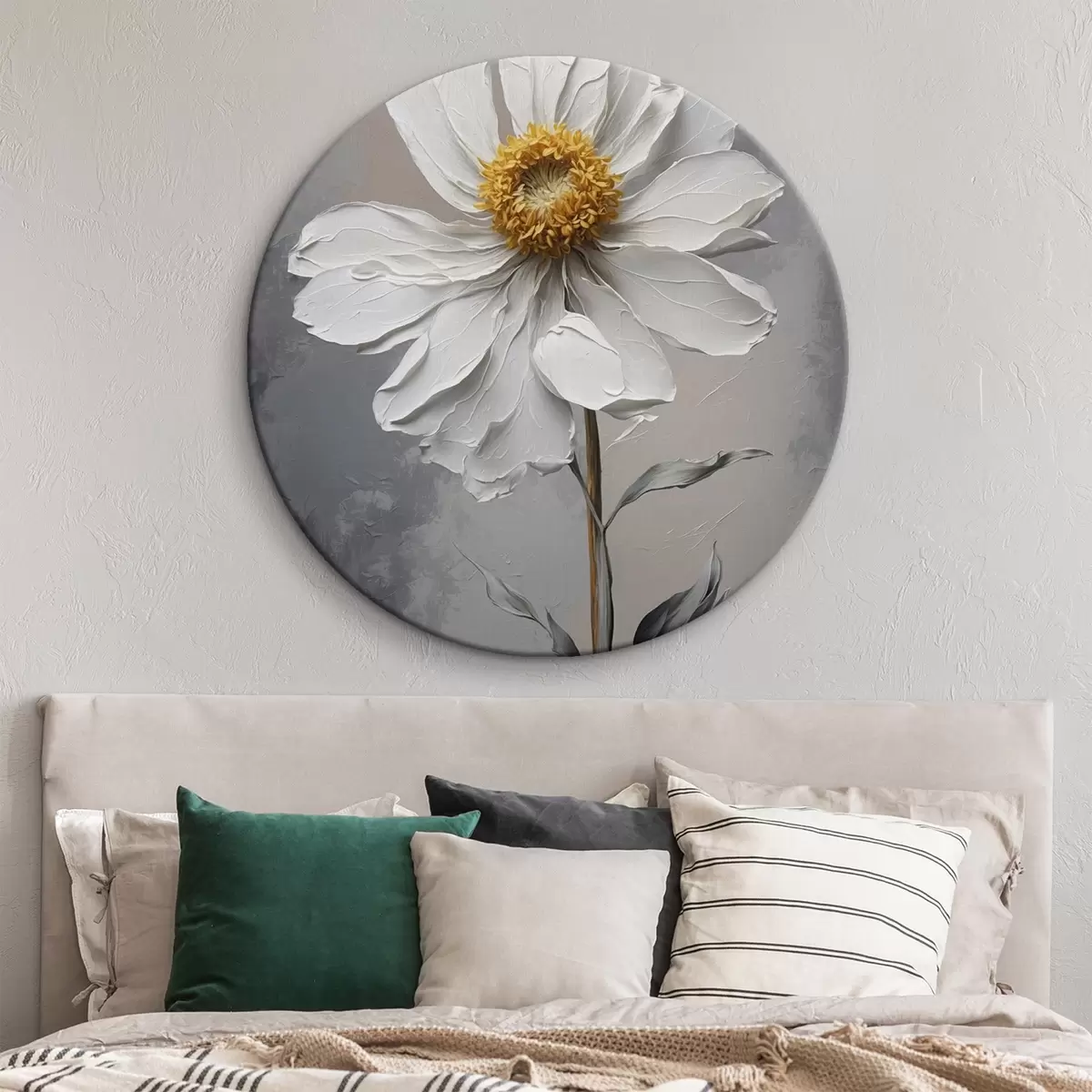 Tableaux rondes Camomille sur fond blanc en style peinture à l'huile Nr r42758
