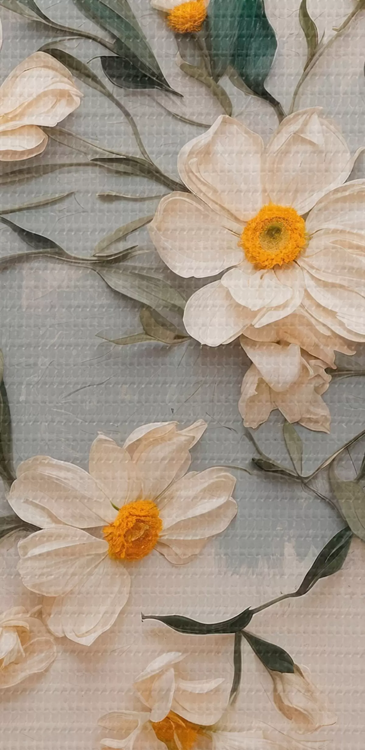 Tableaux rondes Fleurs et feuilles blanches sur fond blanc et gris r42764
