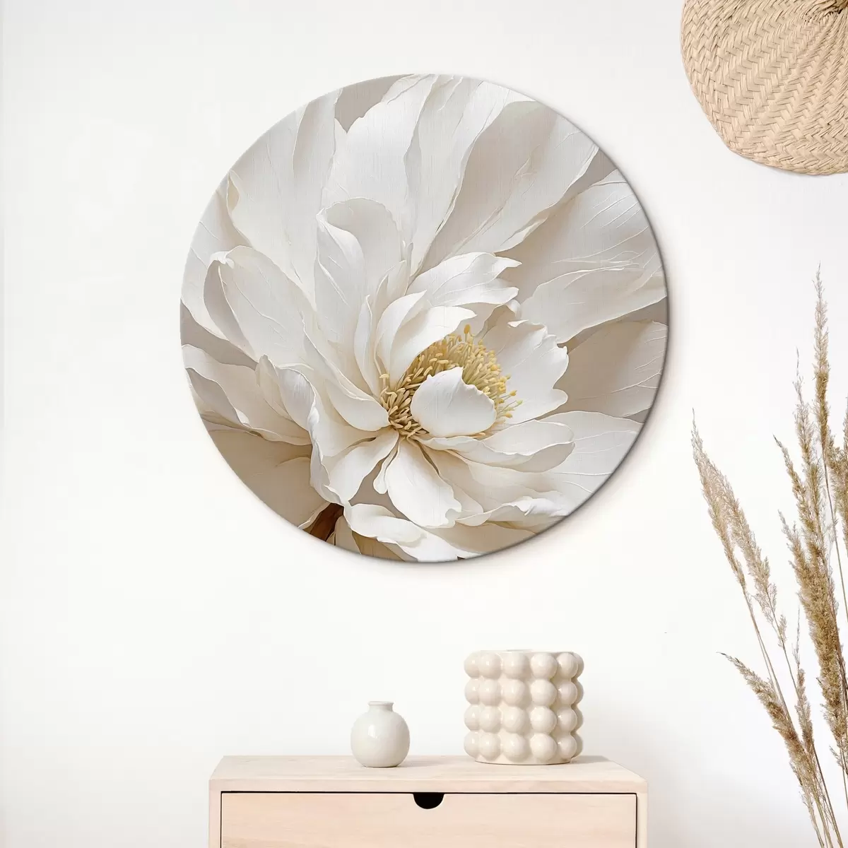 Tableaux rondes Fleur blanche sur fond beige r42778