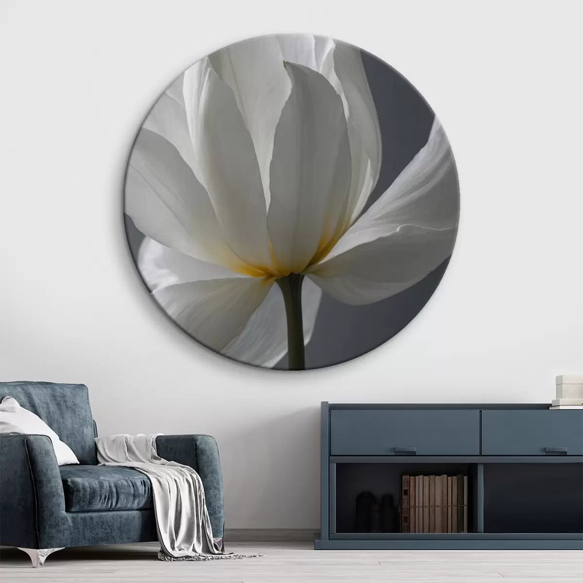 Tableaux rondes Fleur blanche sur fond gris Nr r42779