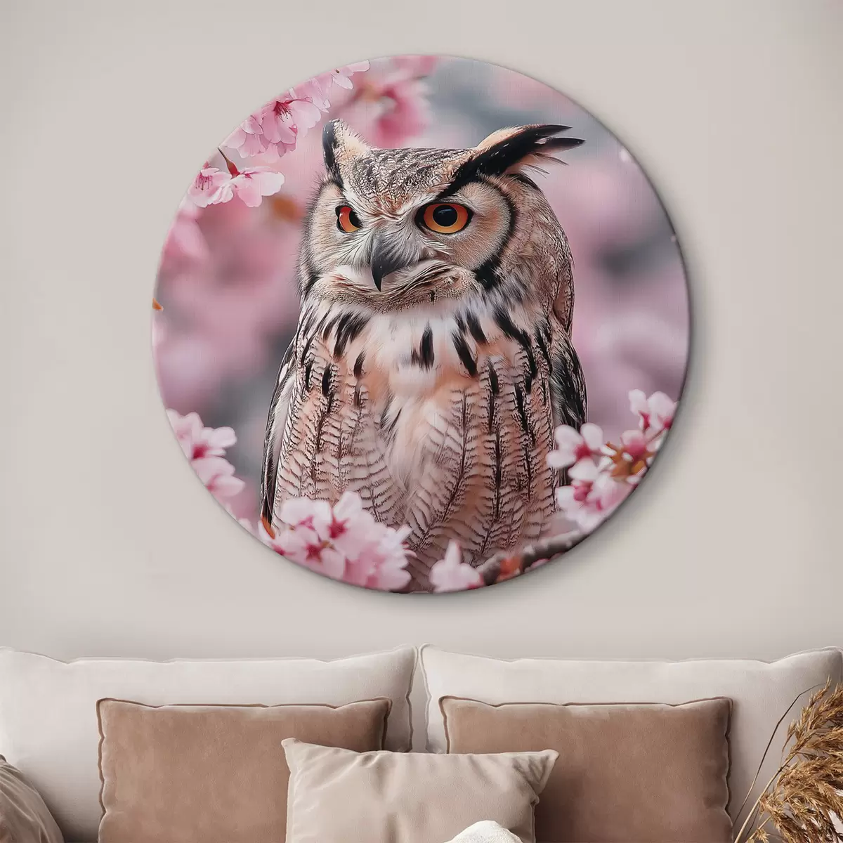 Tableaux rondes Belle chouette sur la branche d'un cerisier, nature, réalisme Nr r42784