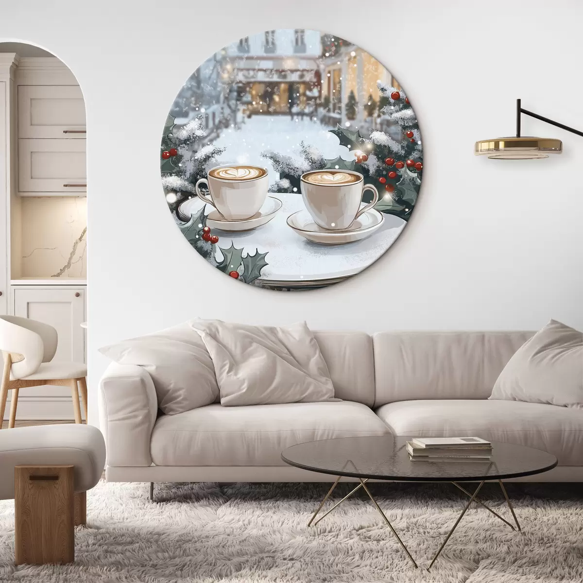 Tableaux rondes Tasses de café dans un café confortable, esthétique hivernale, style boho Nr r42797