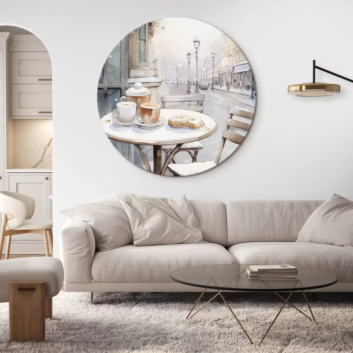Tableaux rondes Café de rue esthétique, France, boulangerie fraîche, dessin à l'aquarelle r42798