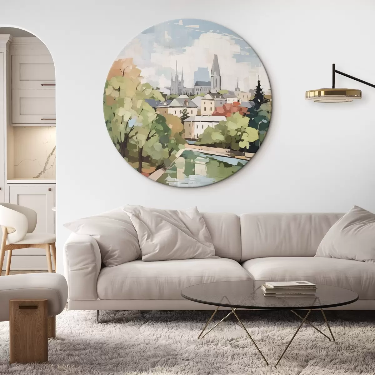 Tableaux rondes Peinture abstraite d'imitation de paysage urbain Nr r42834