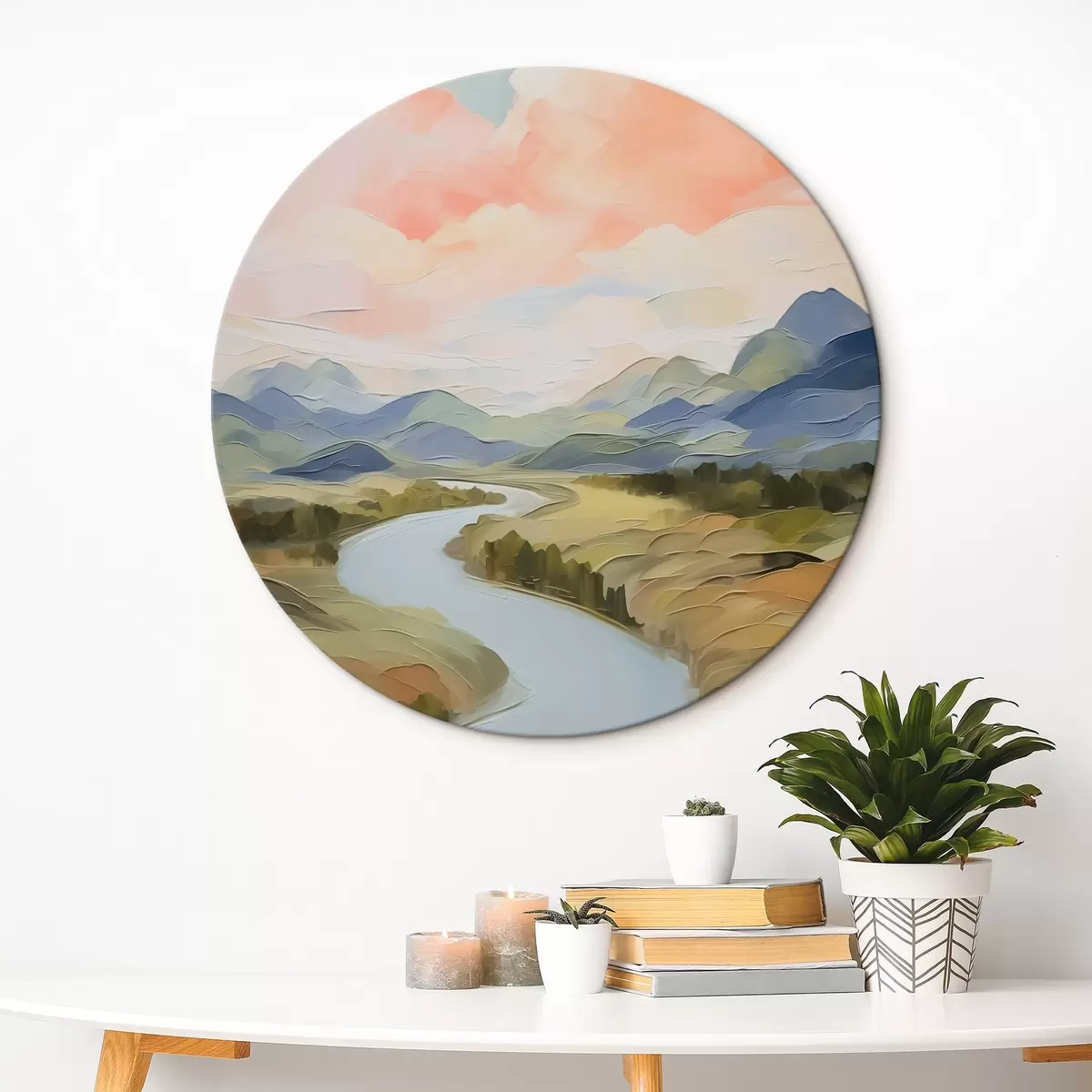 Tableaux rondes Rivière dans la vallée paysage imitation de la peinture r42844