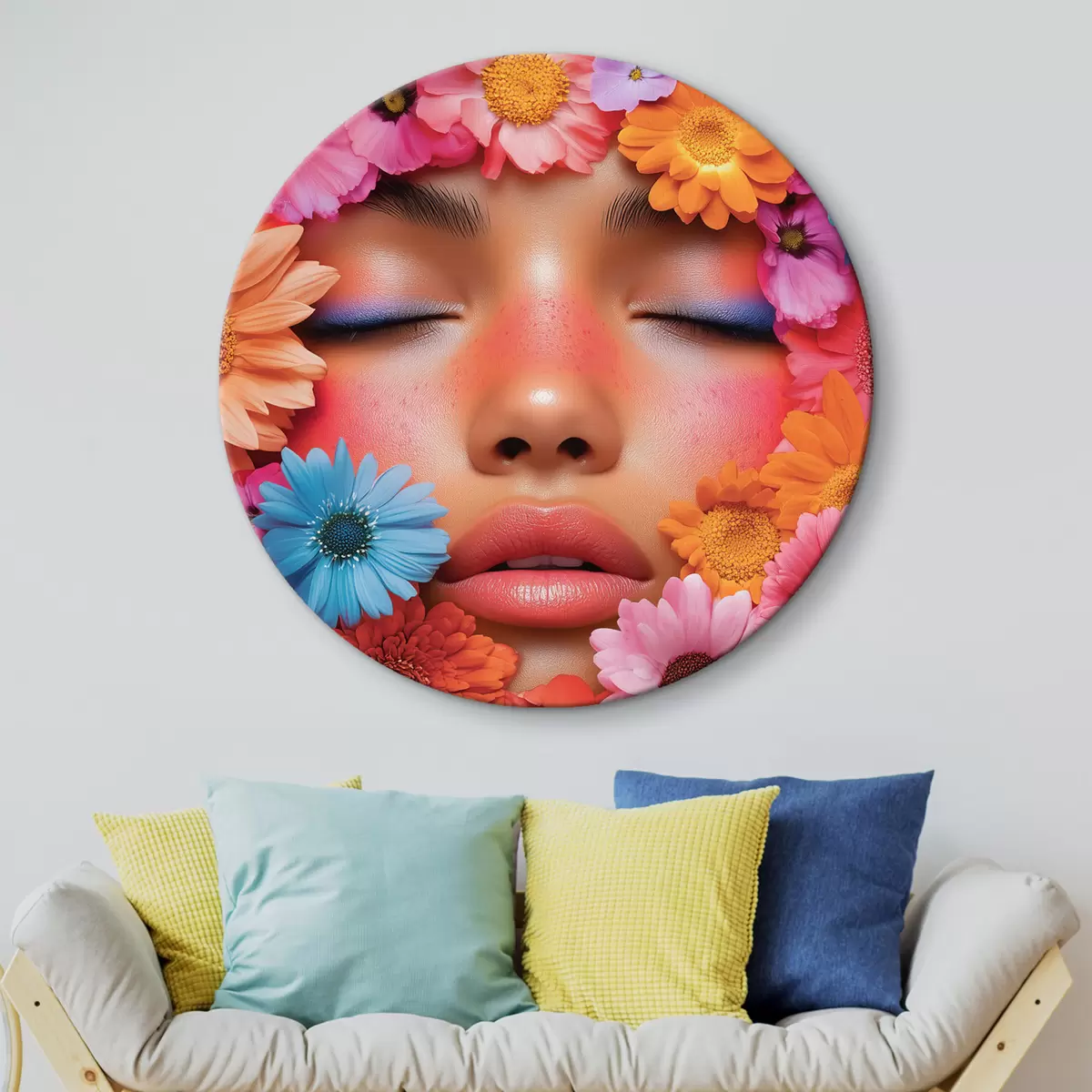 Tableaux rondes Visage de fille dans les fleurs r42856