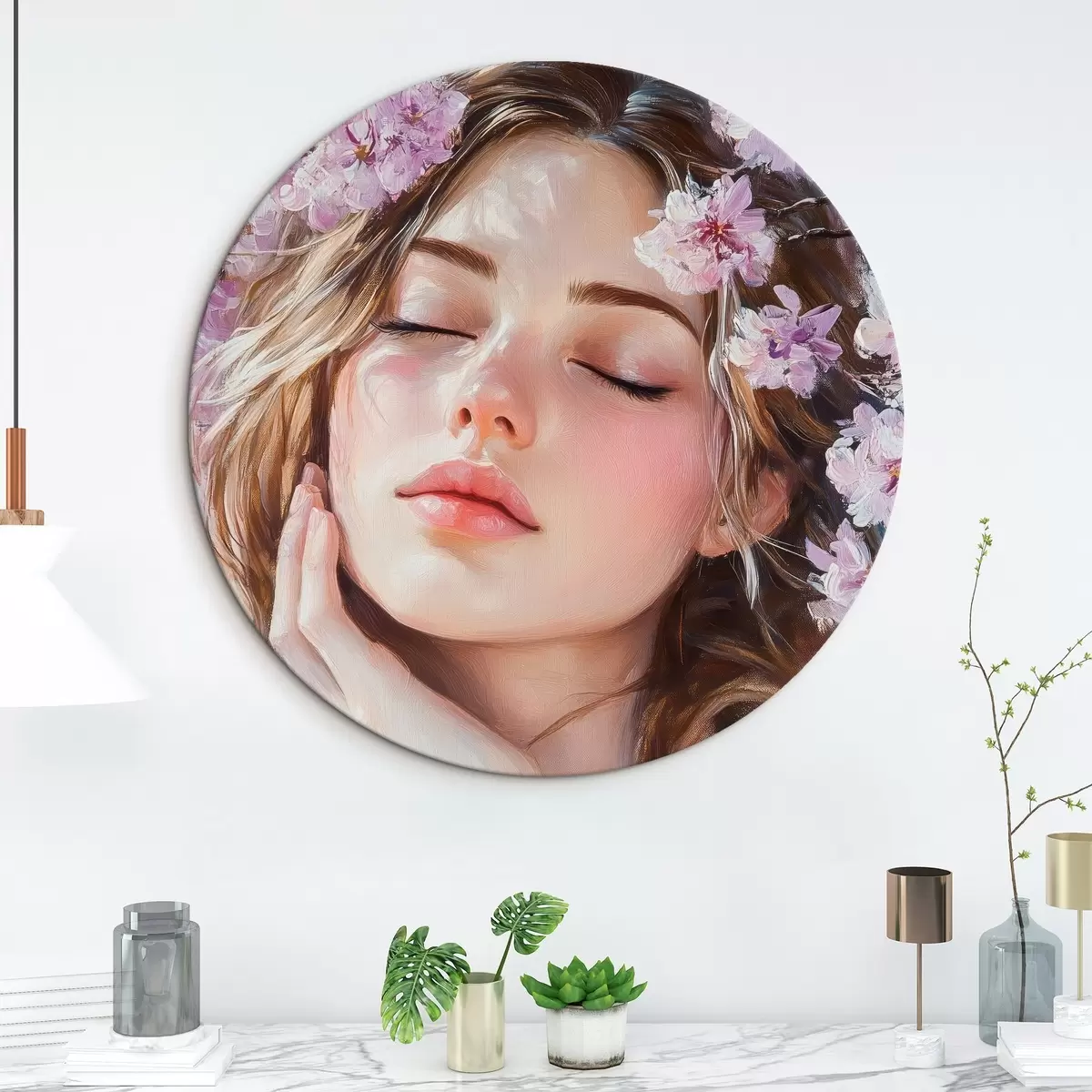 Tableaux rondes Fille près d'une branche fleurie Nr r42857