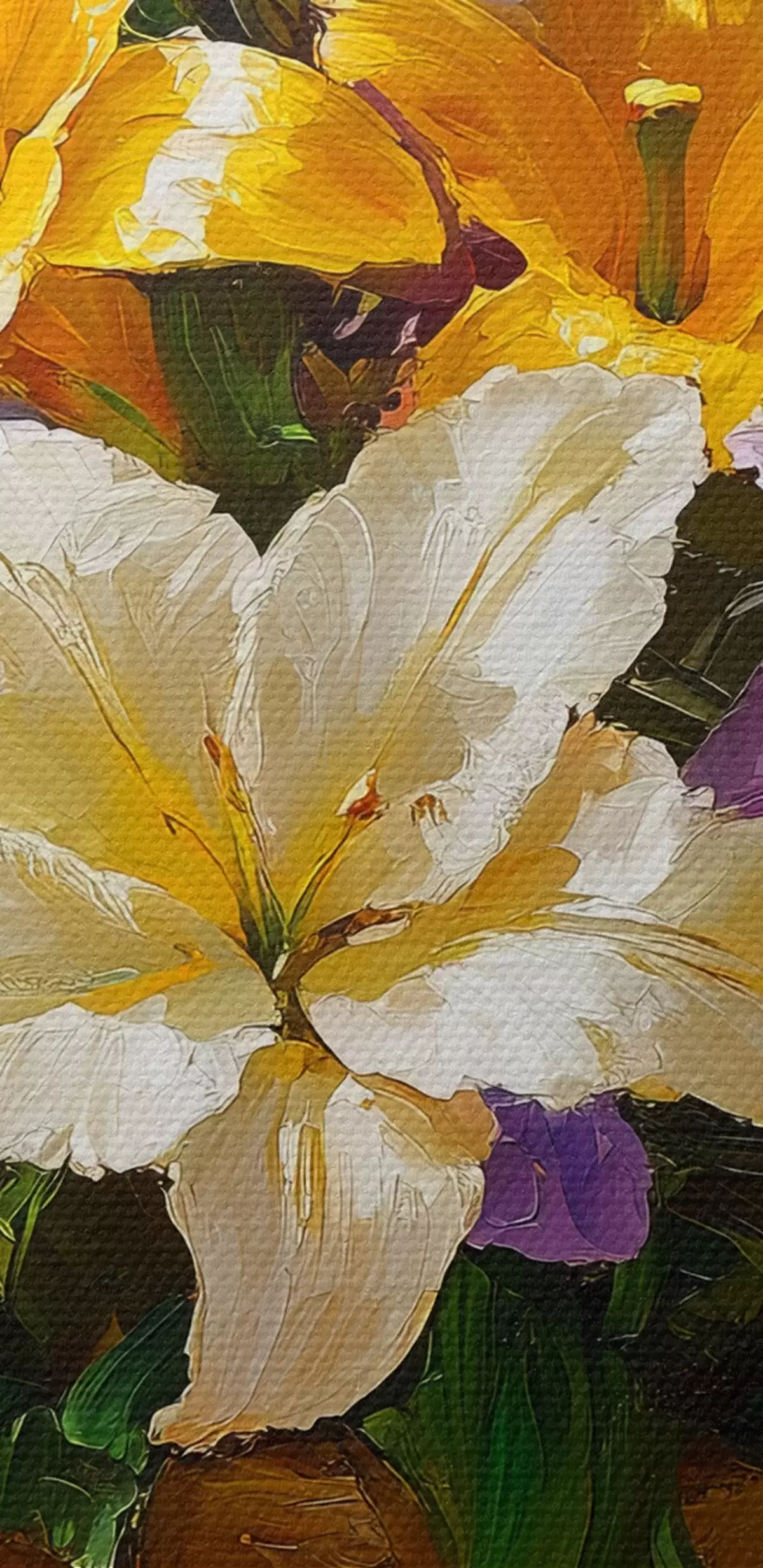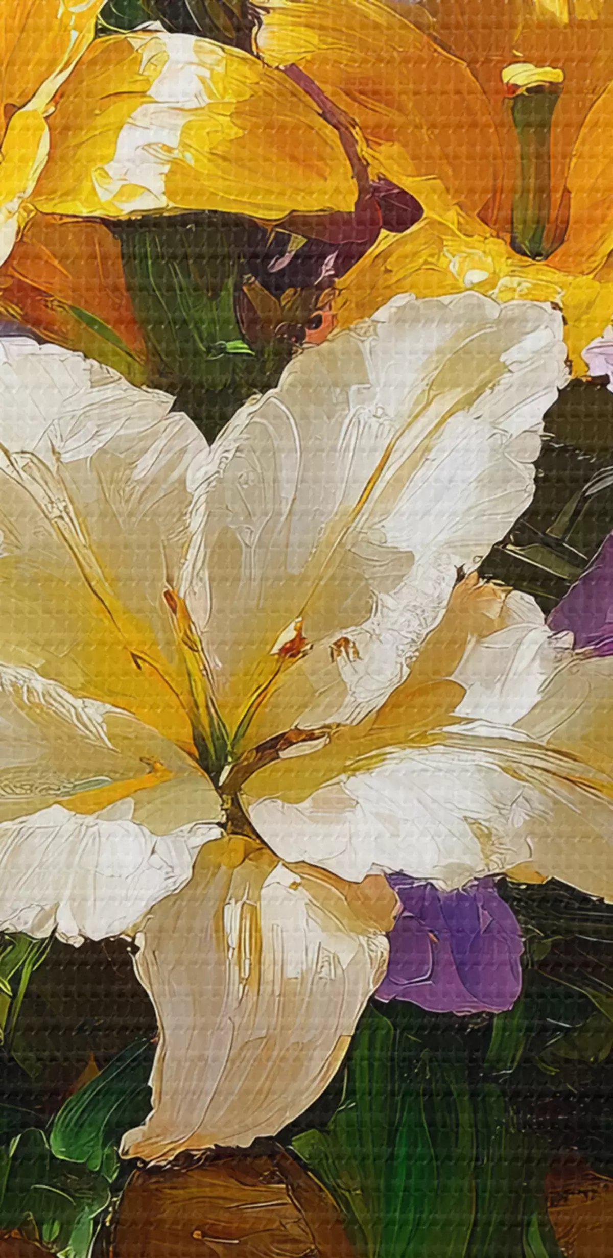 Trois types de matériaux peuvent être commandés : Economic Canvas - matériau dense et durable pour l'impression numérique, identique à la toile de peintre, surface imperméable, reproduction réaliste des détails, matériau à grain moyen. Premium Canvas - la texture ressemble à celle d'une toile de peintre (petits fils entrelacés). Reproduction douce et détaillée de l'image sur une surface mate. Eco-Premium - tissu 100 % coton de haute qualité. Grâce aux fibres naturelles de coton, le matériau est durable et résistant à l'usure. Excellente reproduction des couleurs et des détails.