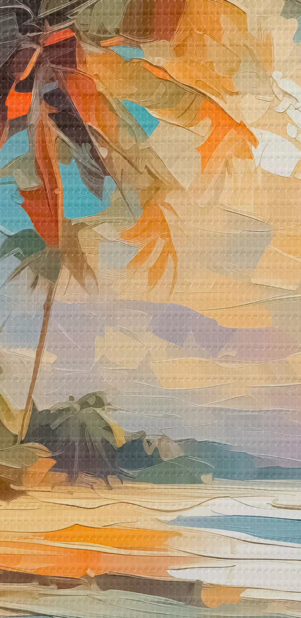 Tableaux rondes Palmiers au bord de la mer imitation de peinture r42897