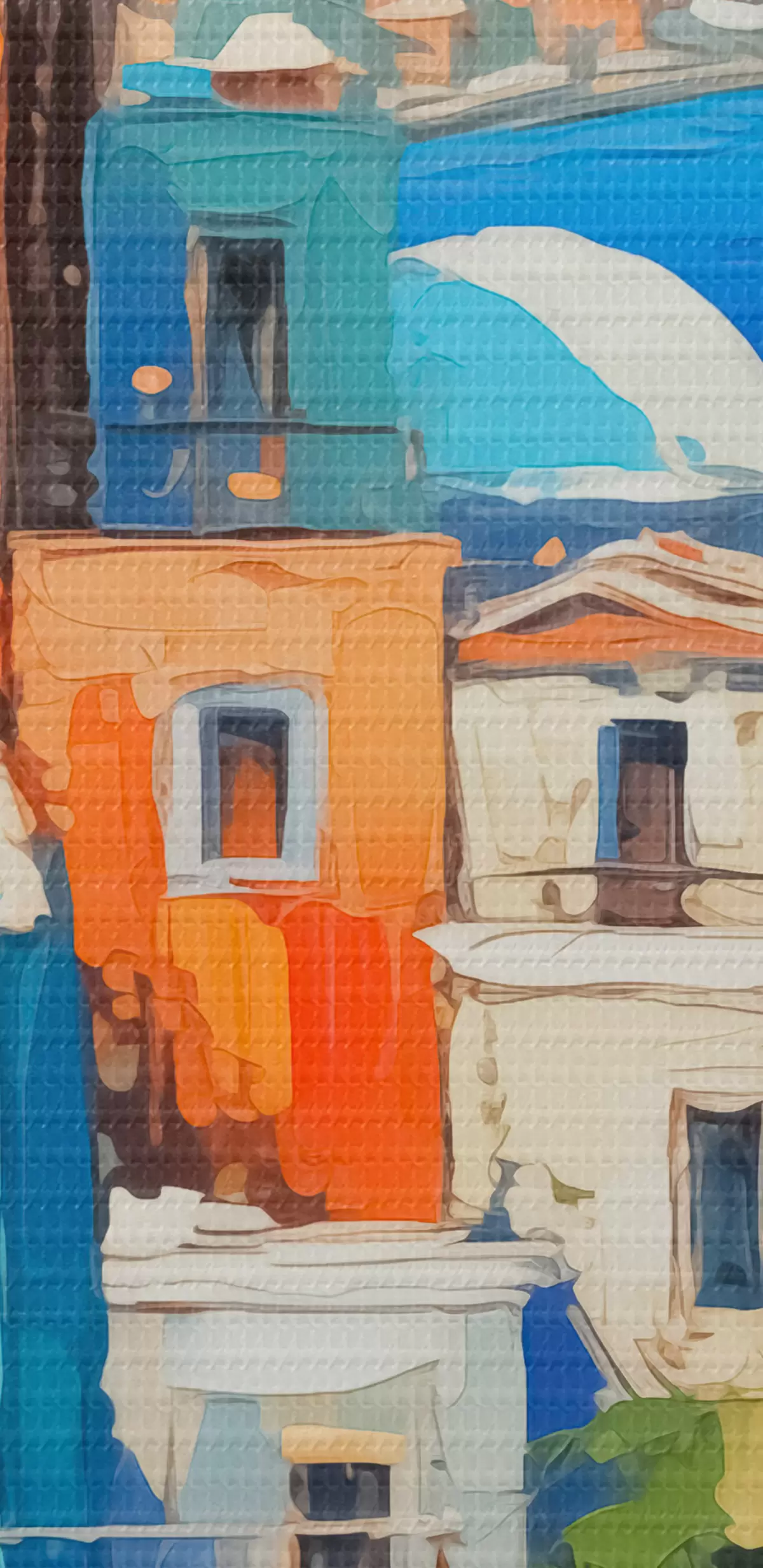Tableaux rondes Maisons au bord de la mer imitation de traits de peinture r42899