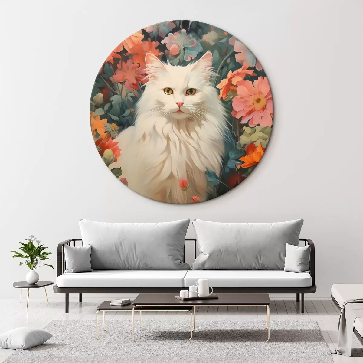 Tableaux rondes Chat blanc dans les fleurs r42905