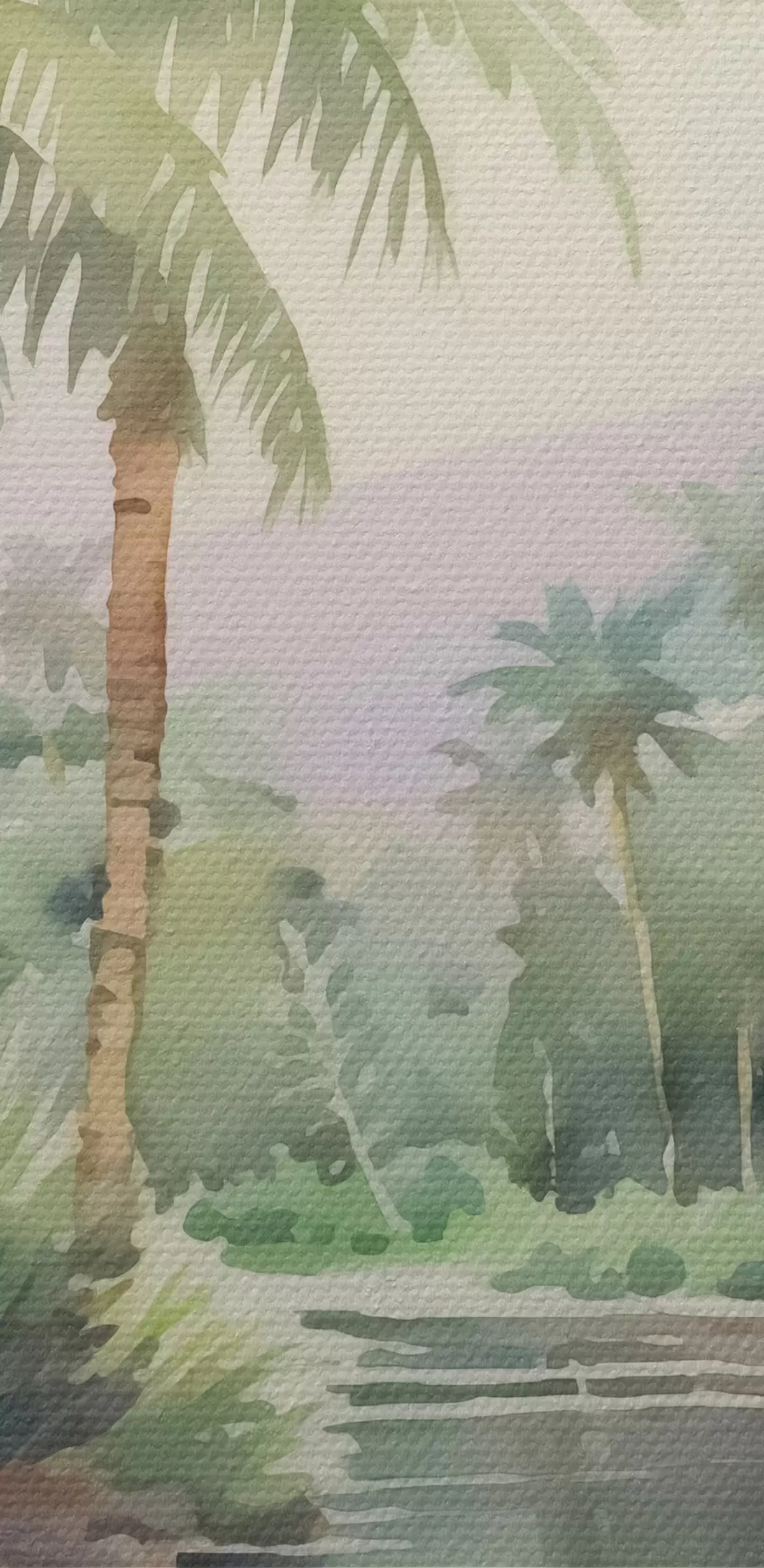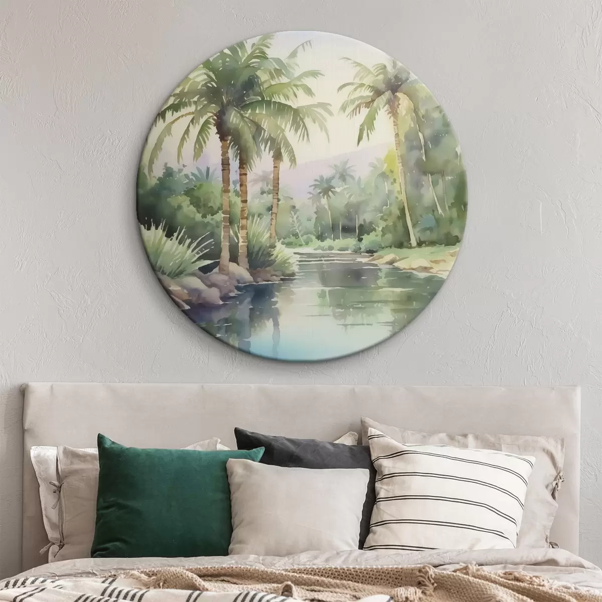 Tableaux rondes Paysage tropical imitation aquarelle Nr r42912