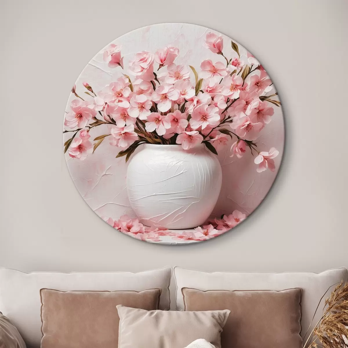 Tableaux rondes Fleurs roses dans un vase blanc Nr r42915