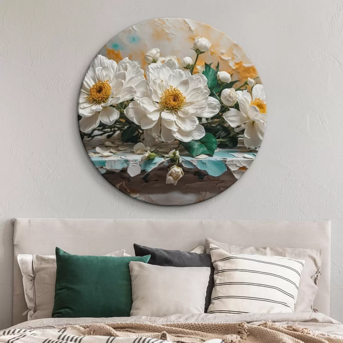 Tableaux rondes Fleurs blanches sur une table sur fond abstrait Nr r42924