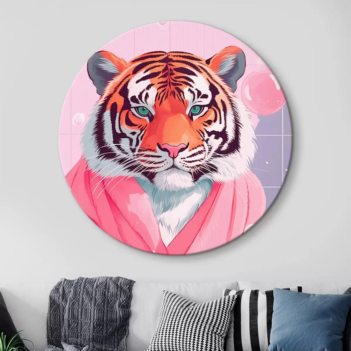 Tableaux rondes Tigre dans une serviette rose Nr r42942