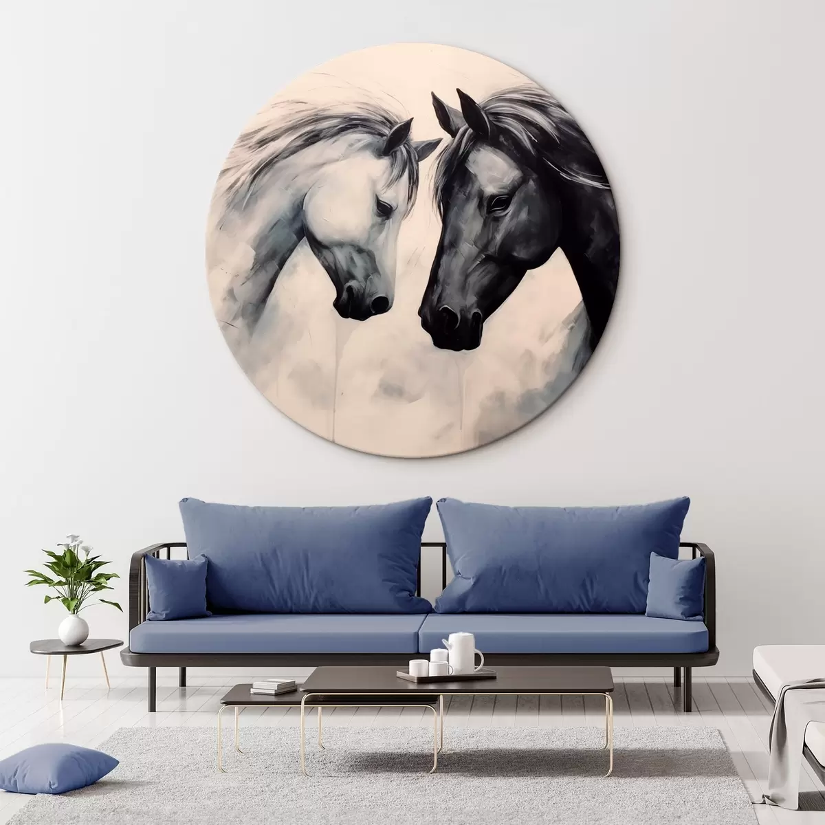 Tableaux rondes Chevaux noirs et blancs r42955