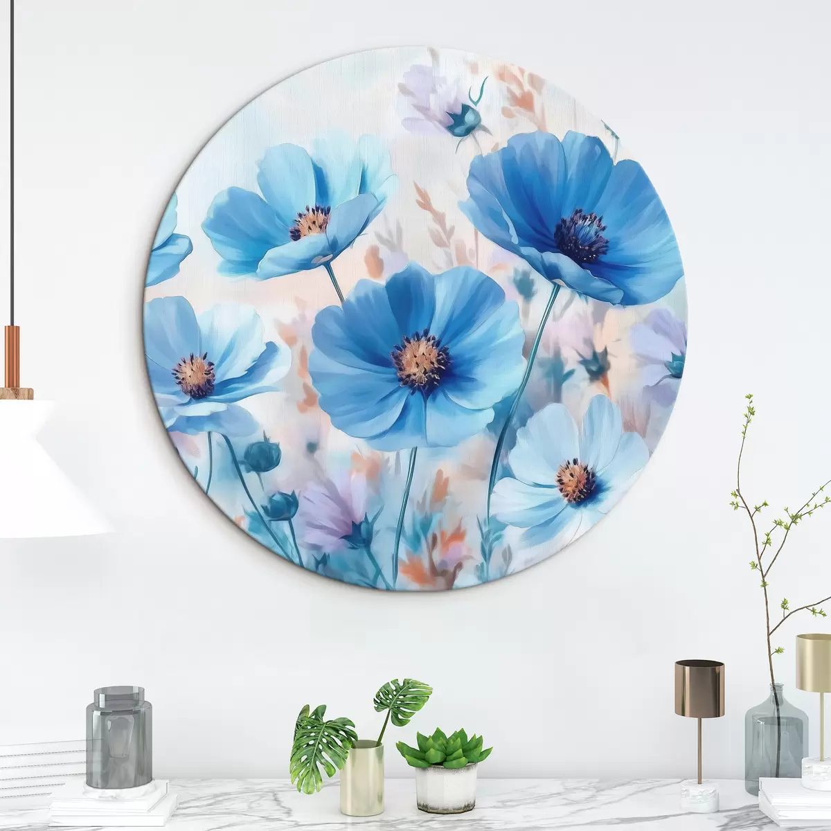 Tableaux rondes Fleurs bleues sur fond bleu Nr r42971