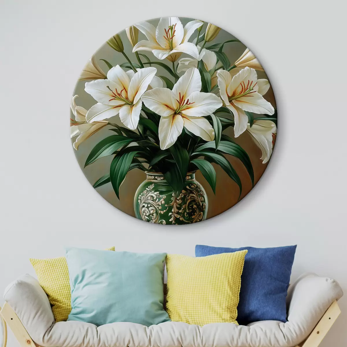 Tableaux rondes Bouquet de lys blancs dans un vase Nr r42975