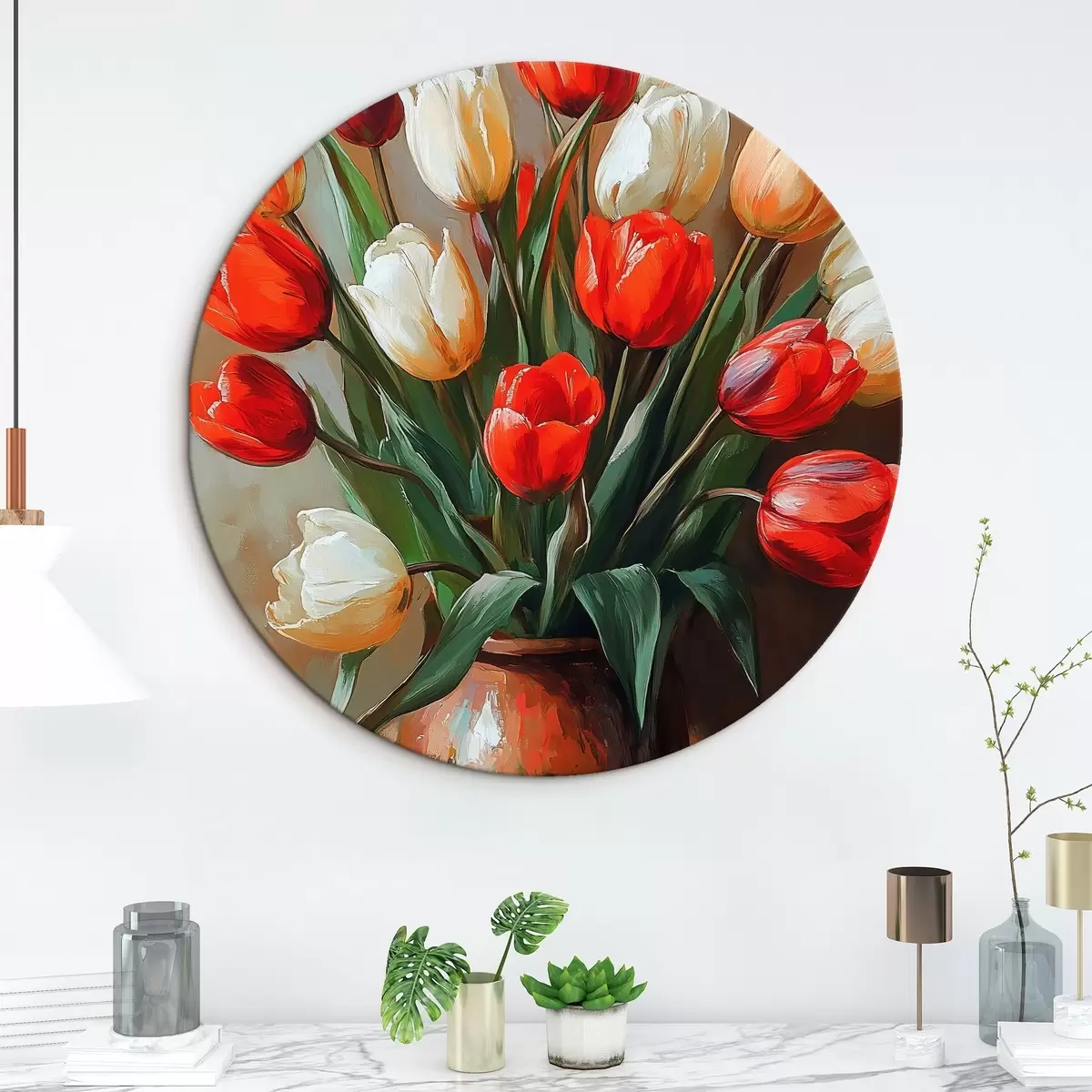 Tableaux rondes Bouquet de tulipes rouges et blanches Nr r42981