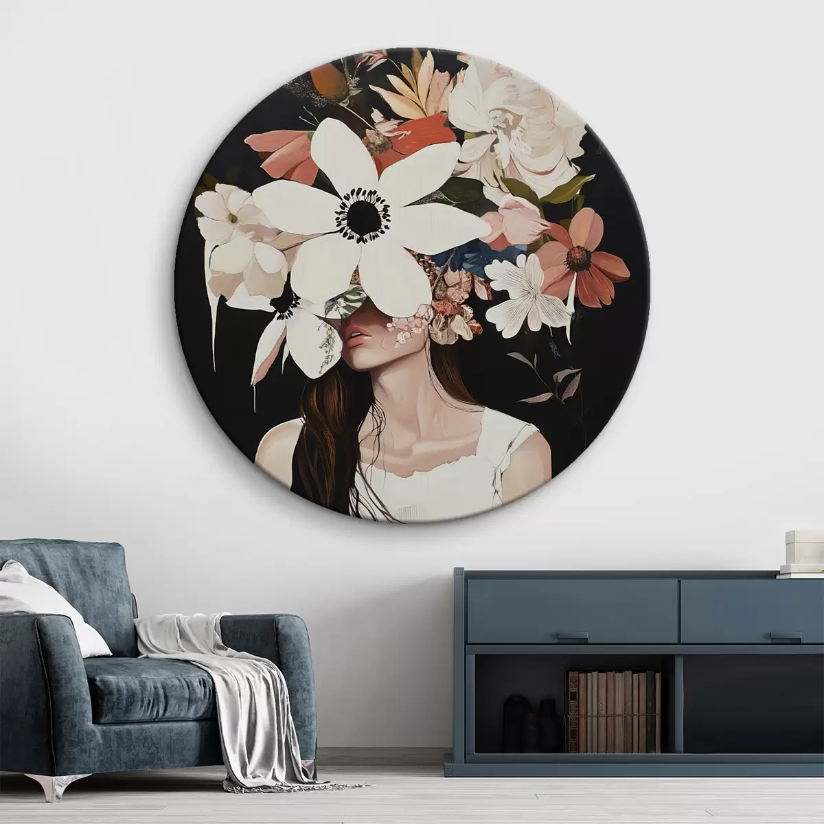 Tableaux rondes Fille avec des fleurs sur le visage Nr r42989
