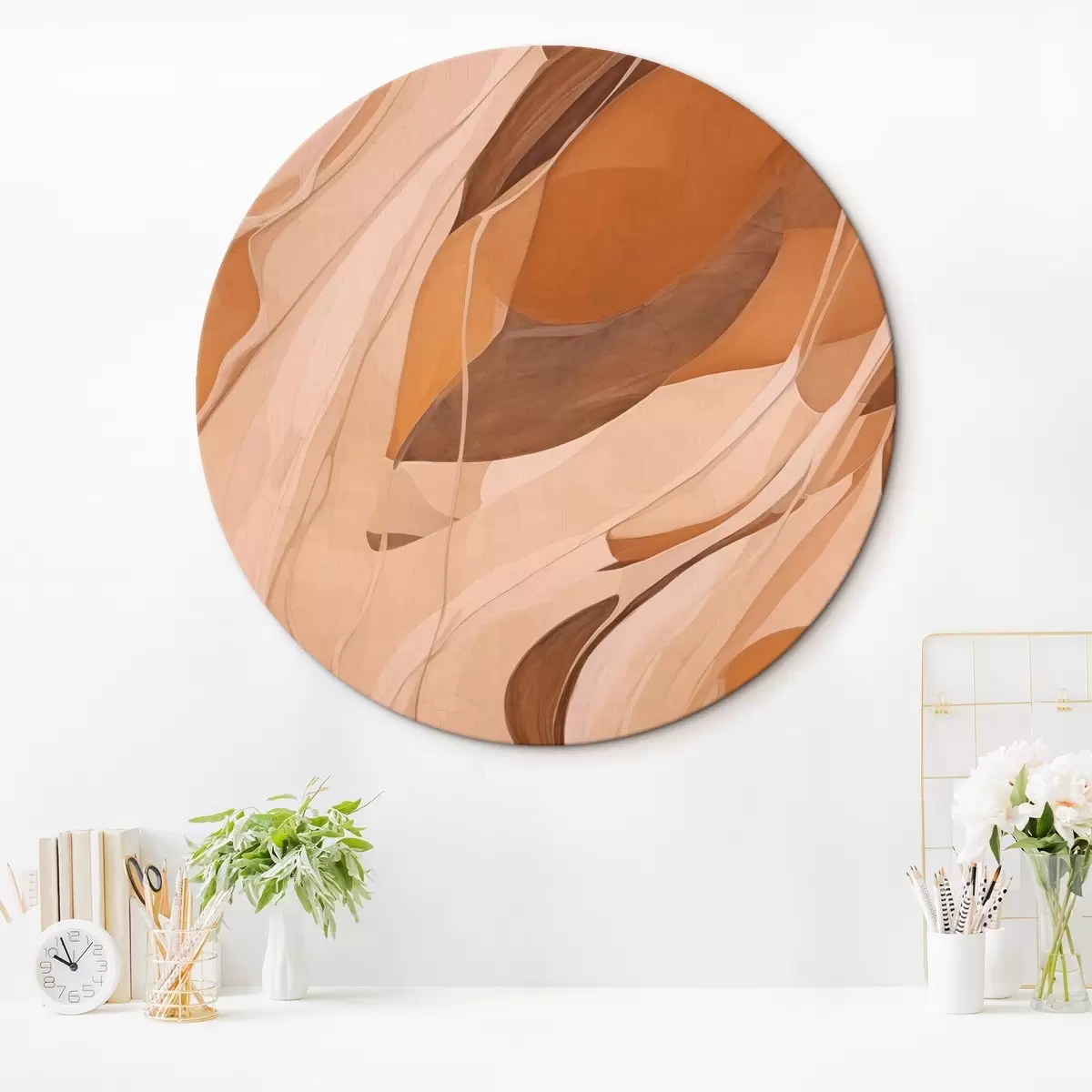 Tableaux rondes Lignes abstraites et lisses dans les tons de brun r43006