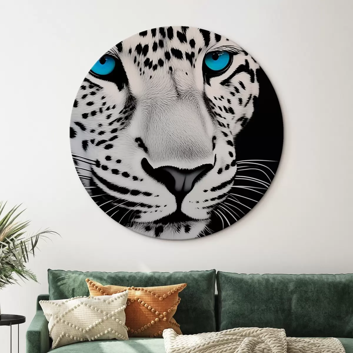 Tableaux rondes Portrait en noir et blanc d'un léopard aux yeux bleus Nr r43008