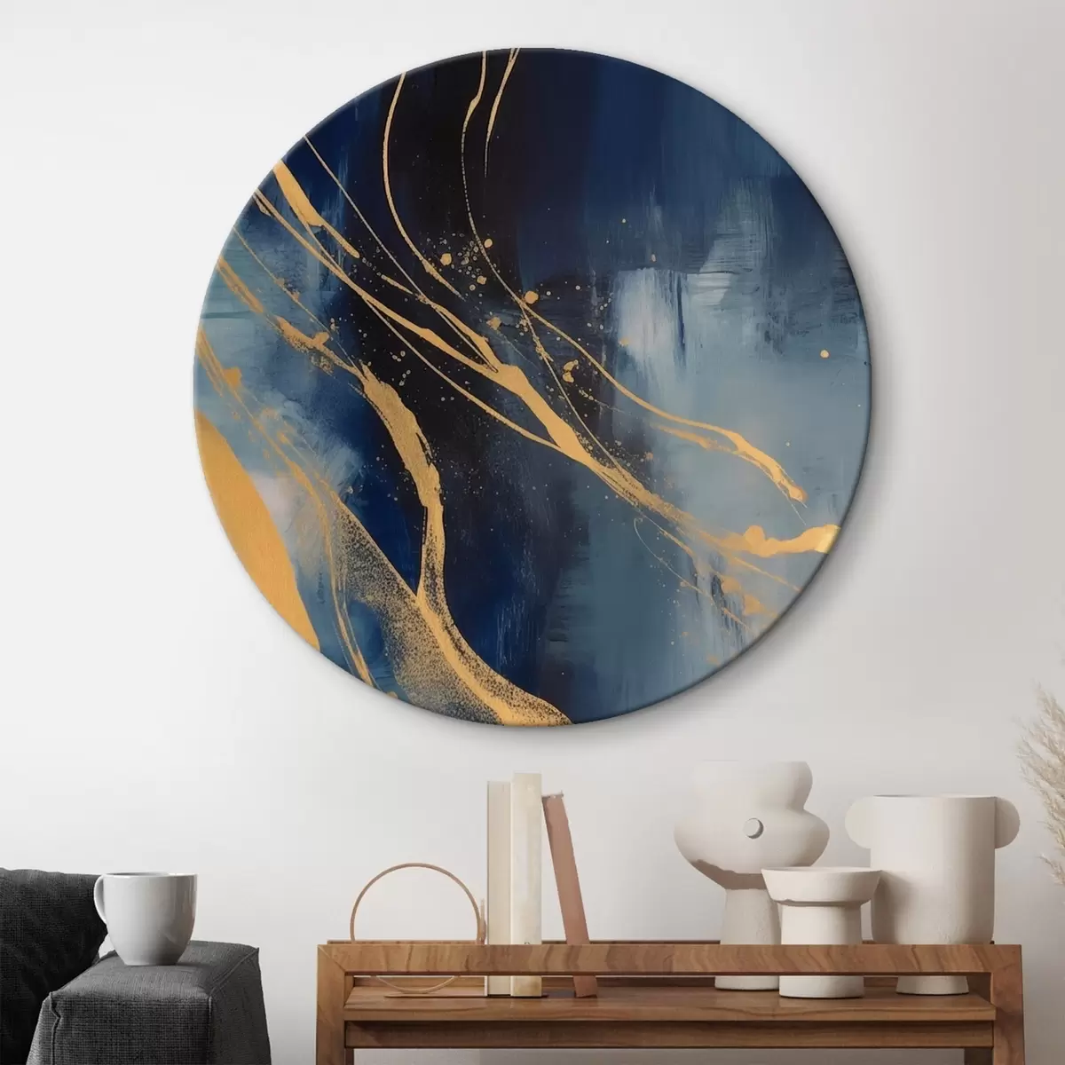 Tableaux rondes Abstraction dans les tons bleus et jaunes Nr r43014