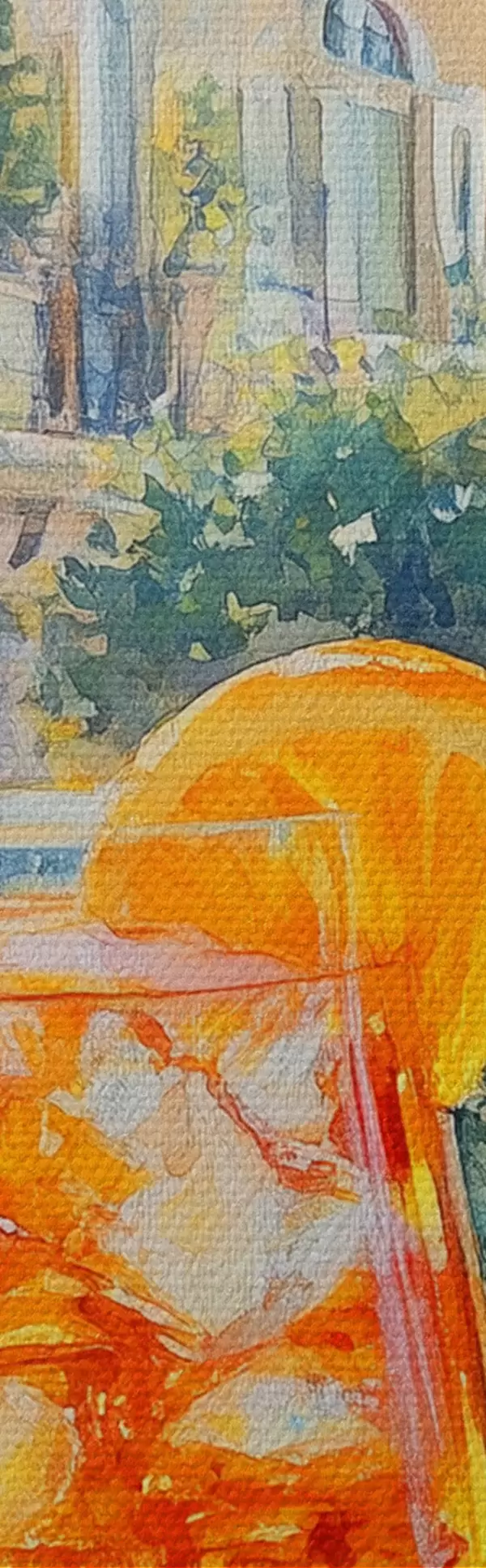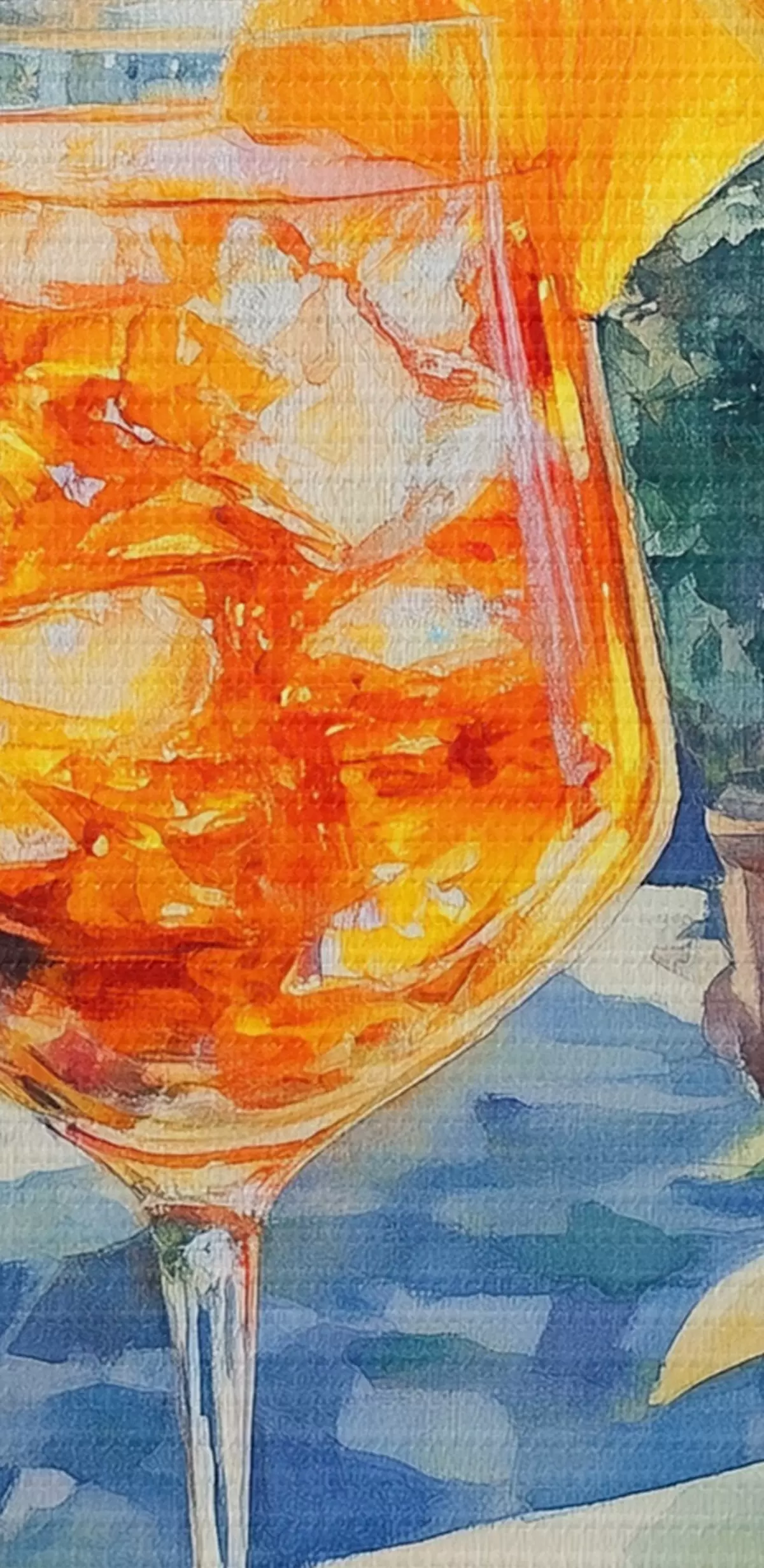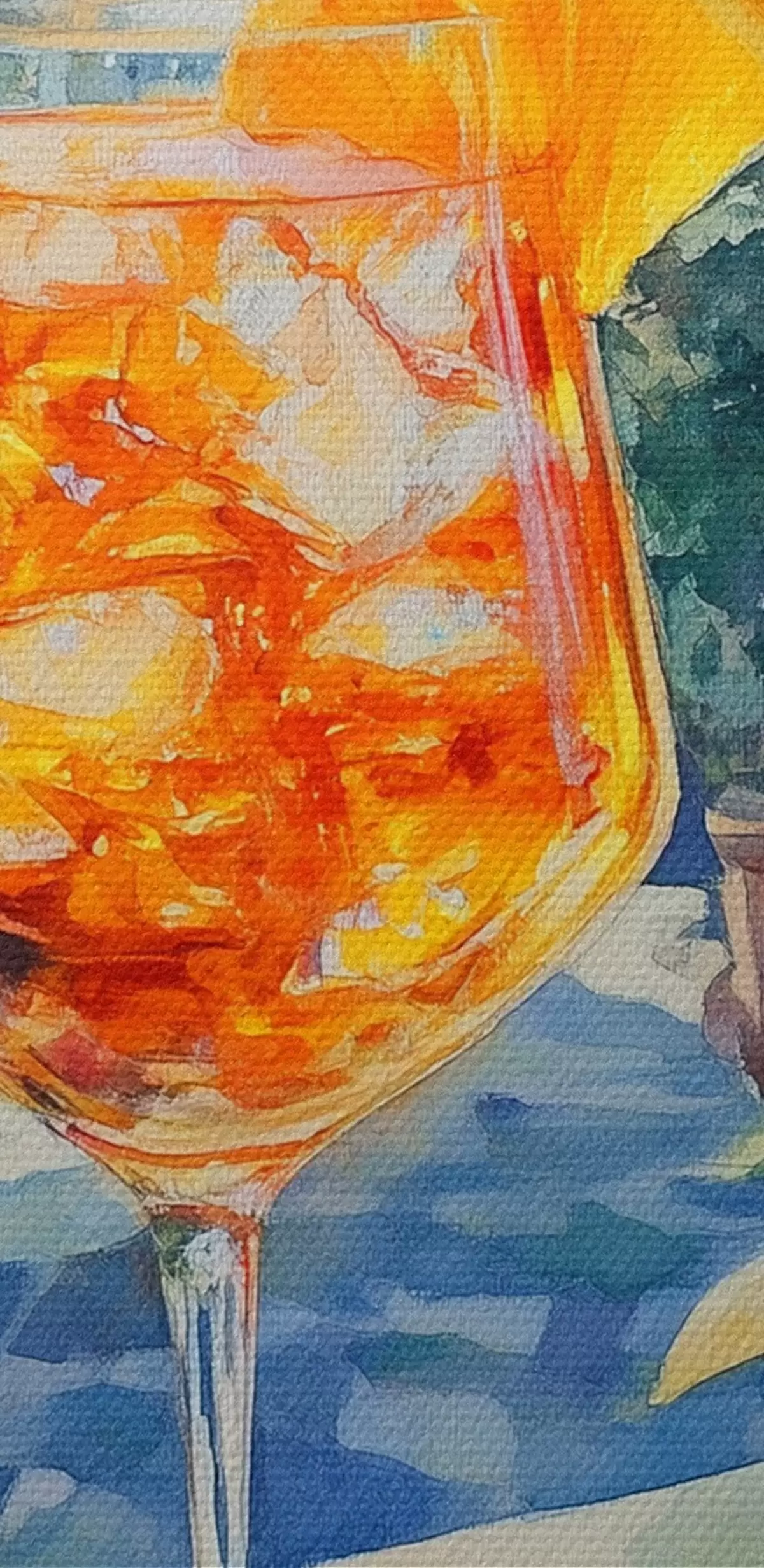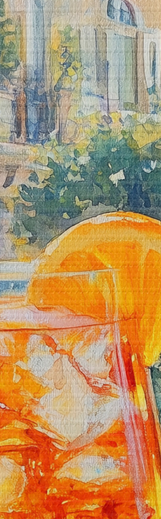 Tableaux rondes Cocktail avec oranges, style aquarelle, Italie, Aperol Spritz, architecture, jardin d'été Nr r43061