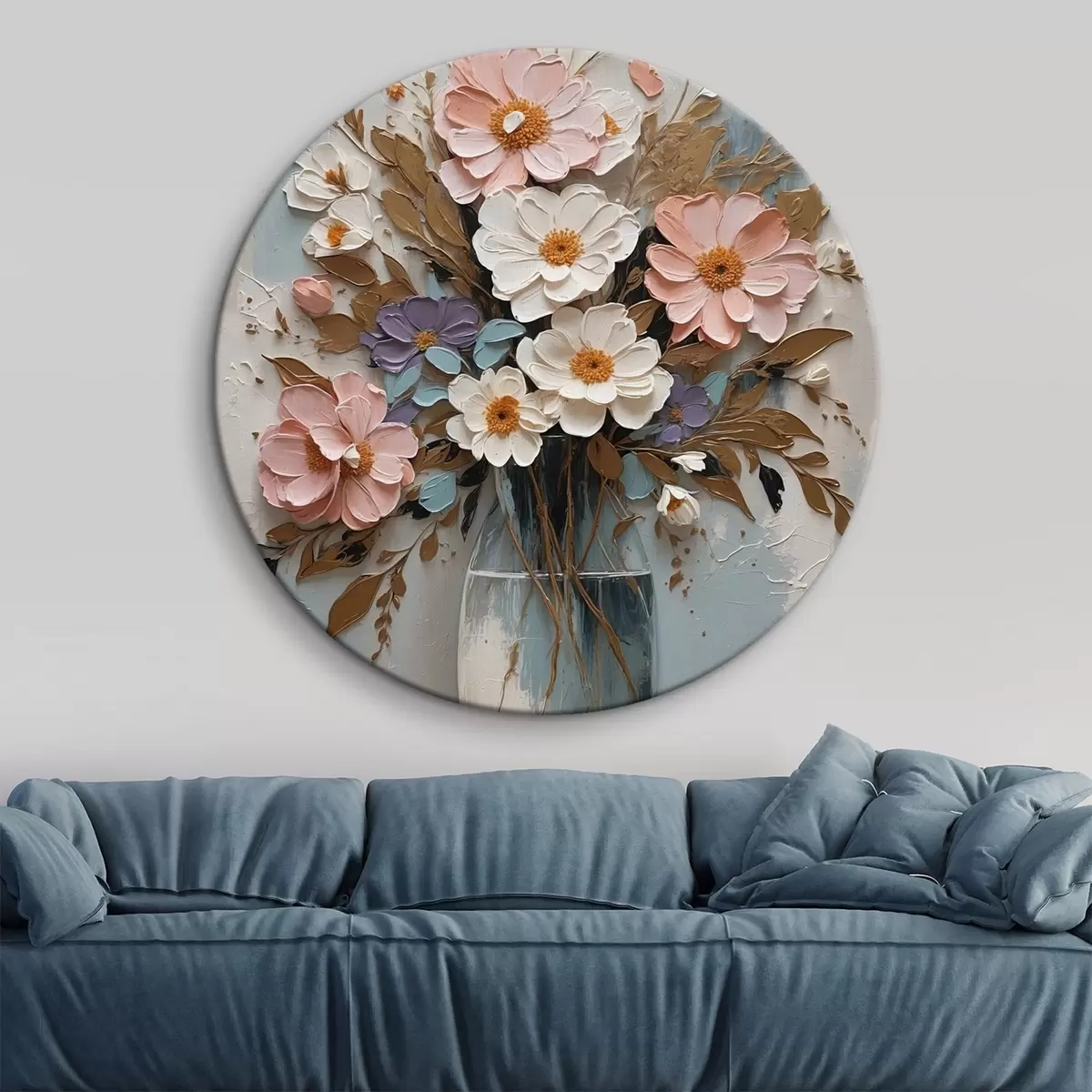 Tableaux rondes Fleurs roses et blanches dans un vase transparent Nr r43089