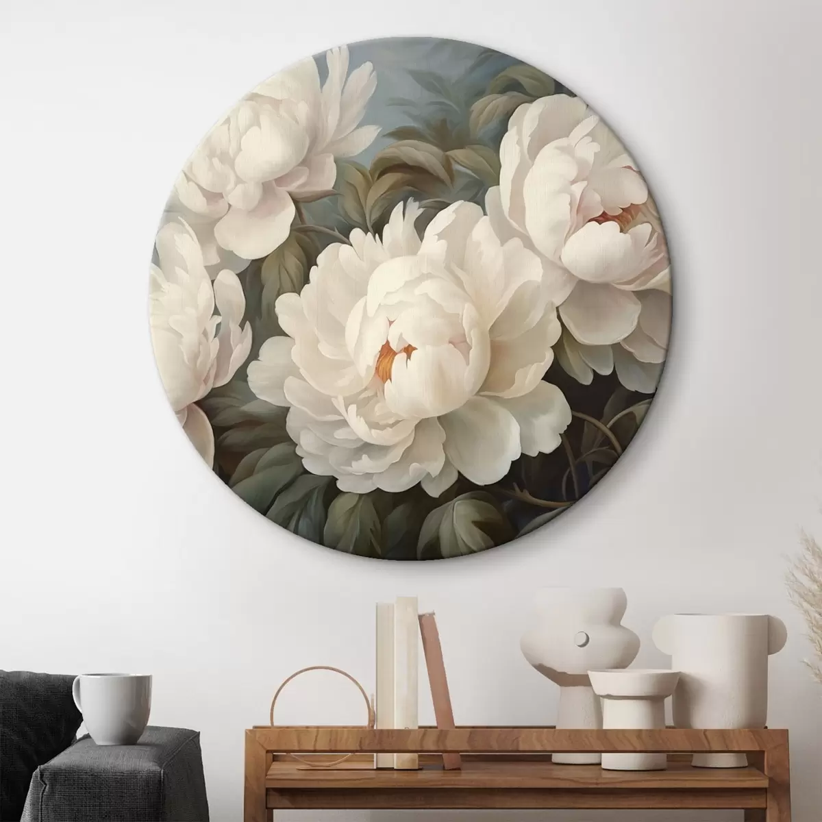 Tableaux rondes Fleurs et feuilles blanches dans le brouillard Nr r43091