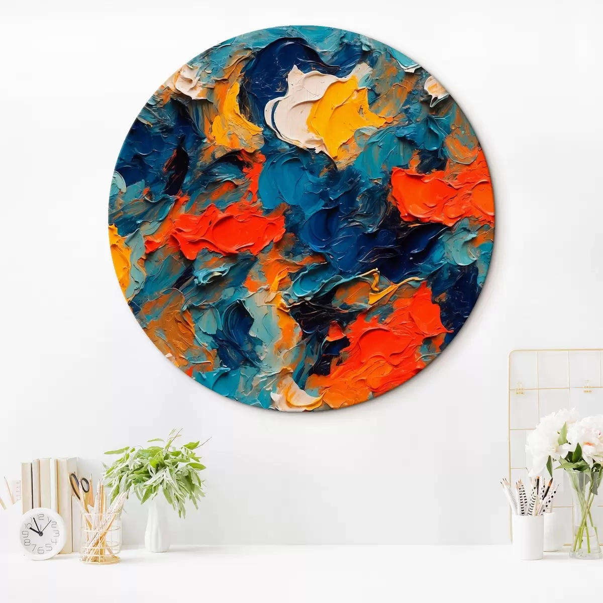 Tableaux rondes Peinture abstraite à l'huile avec des couleurs blanches, bleues et rouges r43093