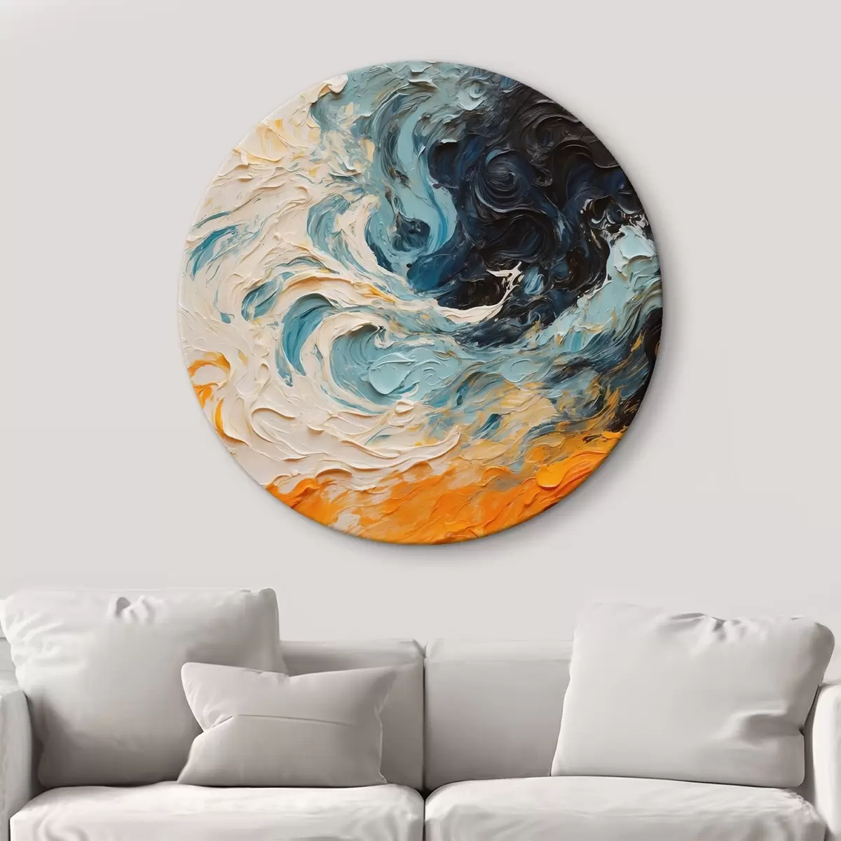 Tableaux rondes Mer déchaînée abstraite dans le style de la peinture à l'huile r43095