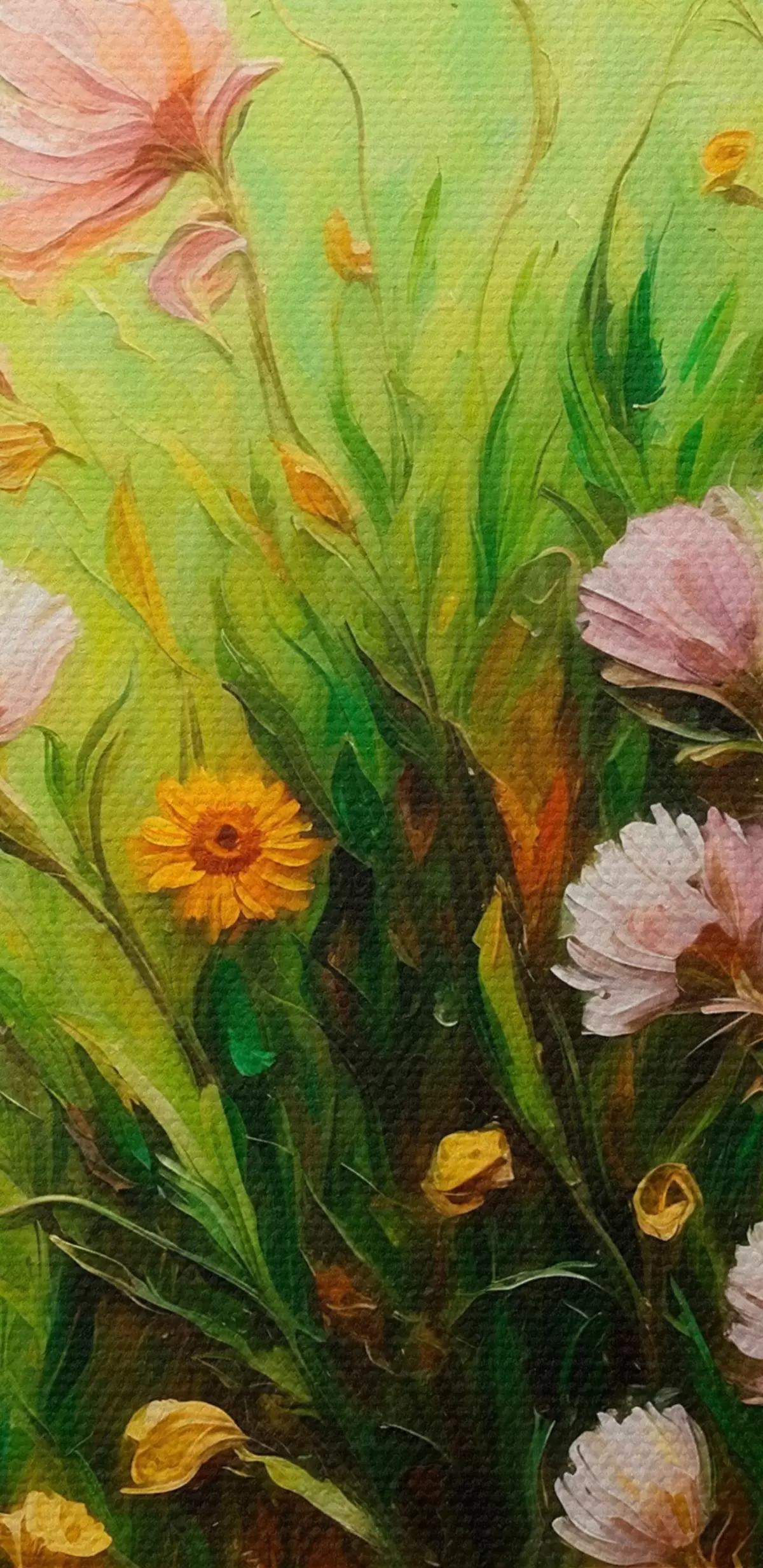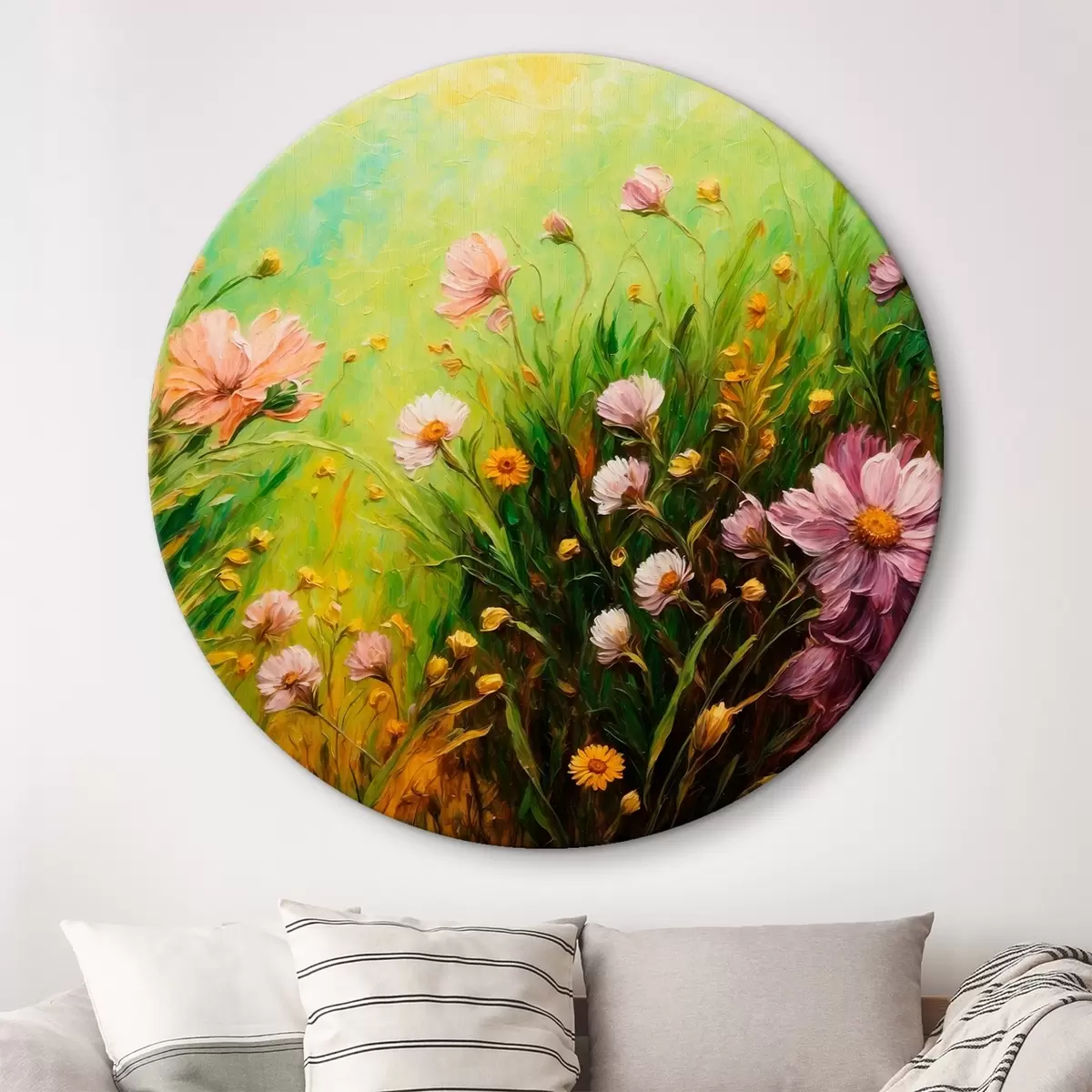 Tableaux rondes Champ de fleurs sur fond vert abstrait Nr r43101