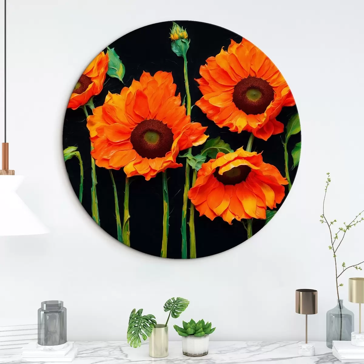 Tableaux rondes Tournesols rouges sur fond sombre r43103
