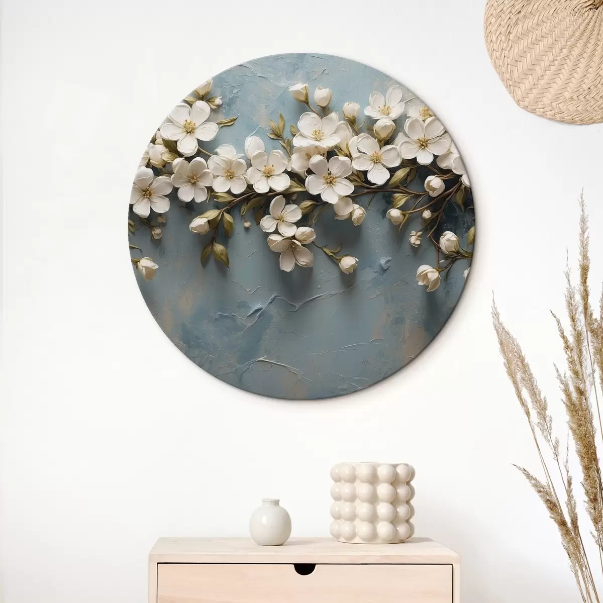 Tableaux rondes Branche avec fleurs sur fond de style acrylique Nr r43111