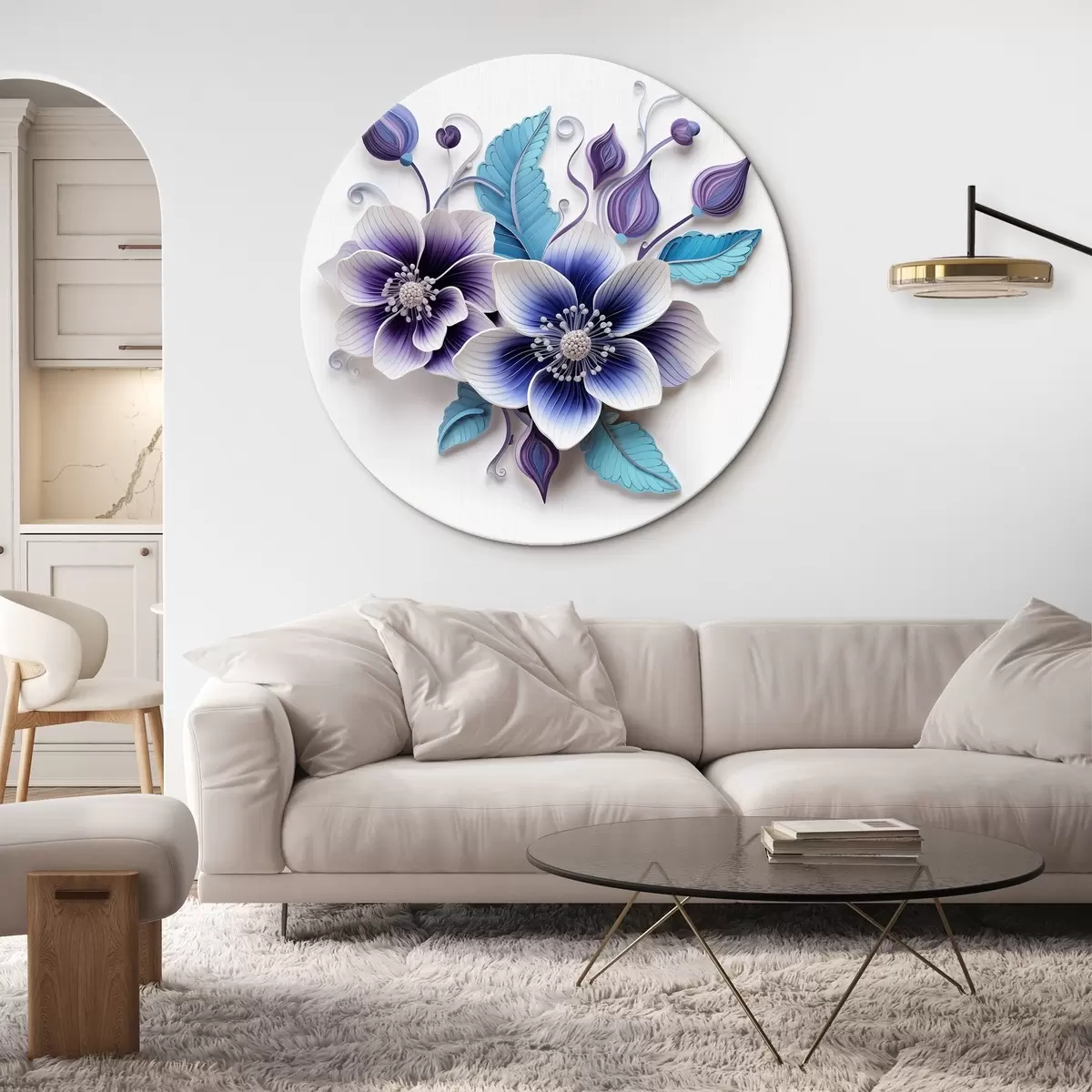 Tableaux rondes Fleurs bleues délicates r43125