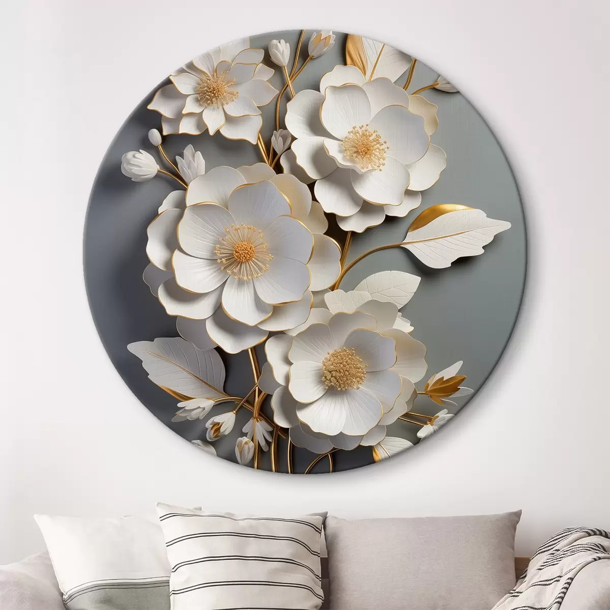 Tableaux rondes Fleurs volumétriques sur fond gris r43128