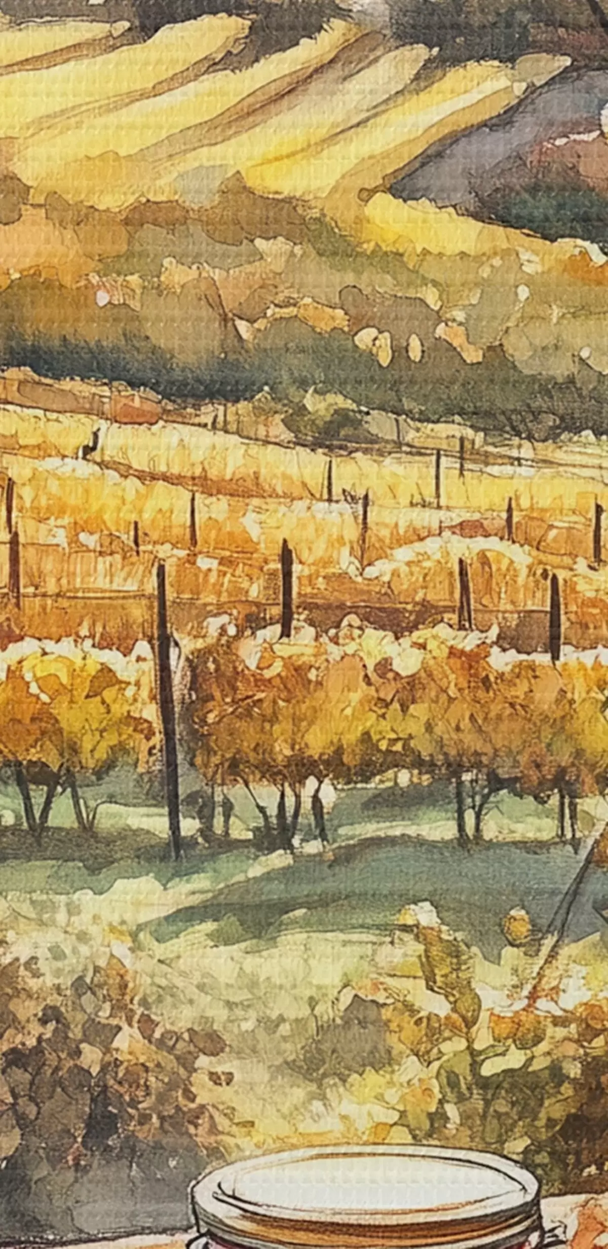 Tableaux rondes Récolte dans le village, rustique, fruits, confiture, paysages de nature, style aquarelle r43186