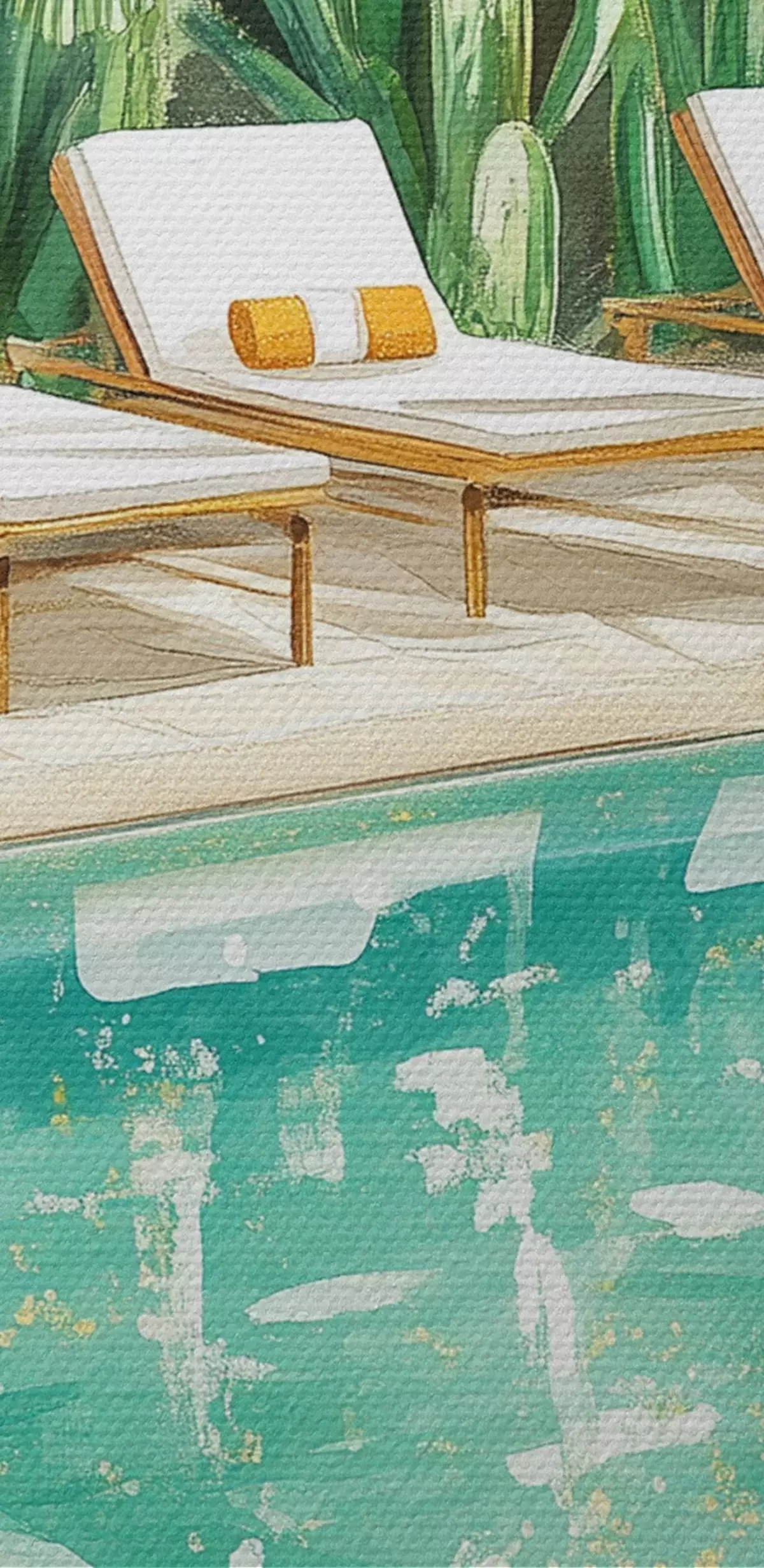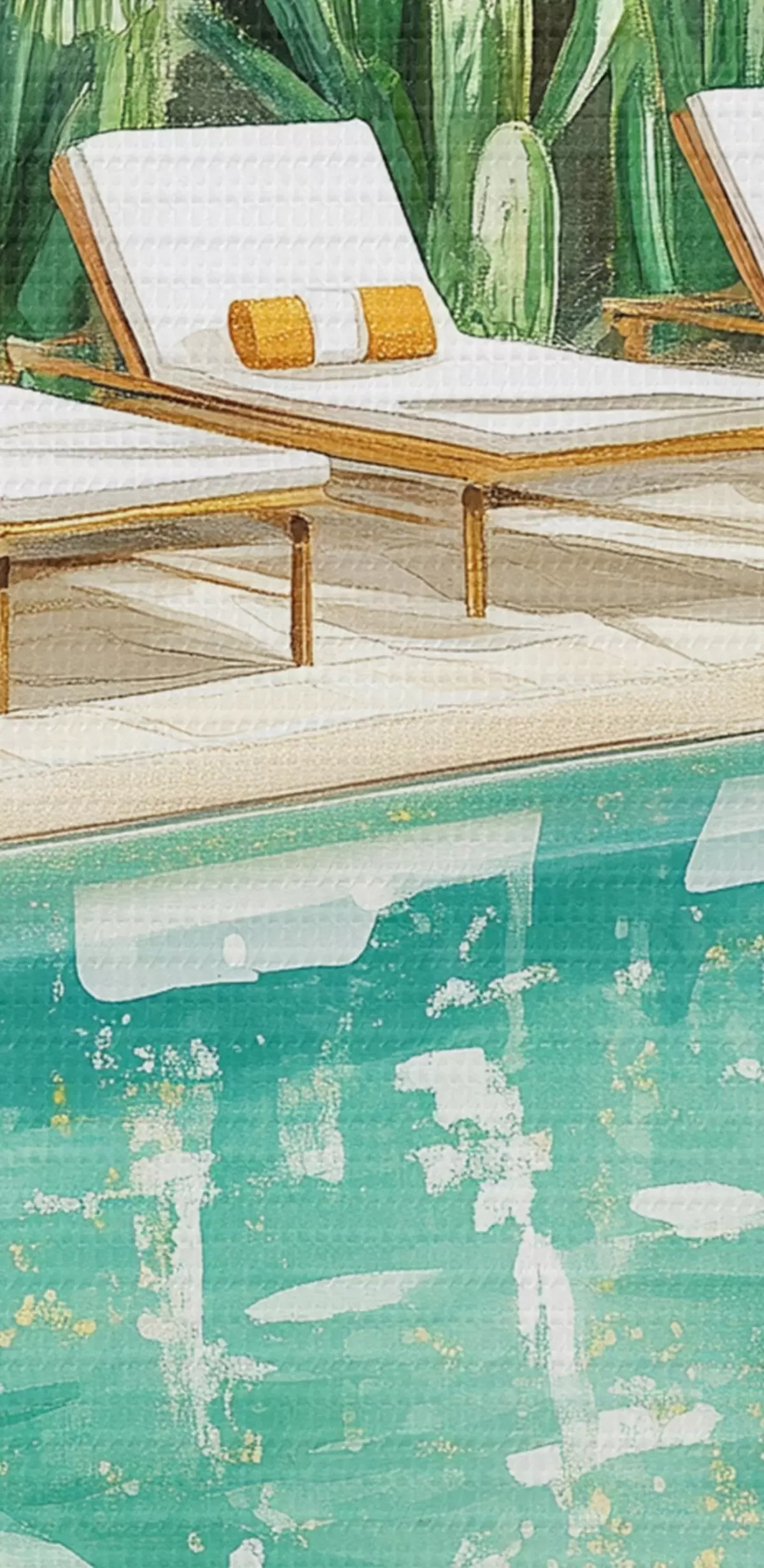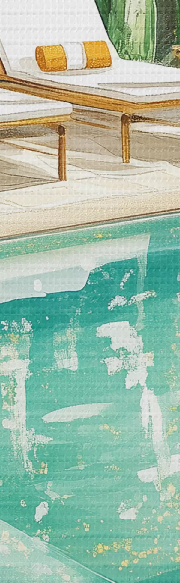 Tableaux rondes Nature tropicale, jardin, piscine d'été, surf, style aquarelle r43190